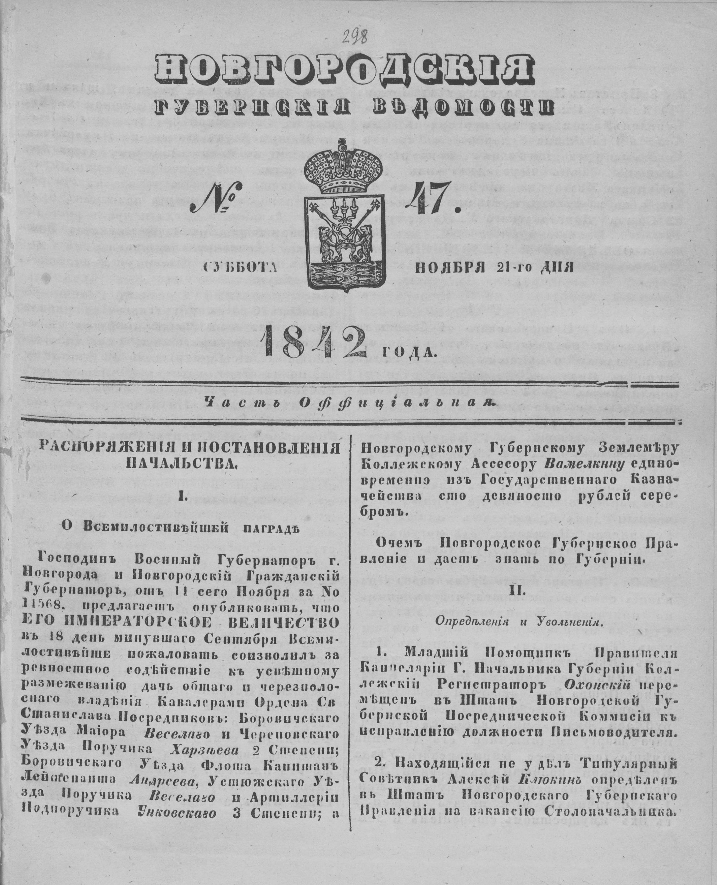 НОВГОРОДСКИЕ ГУБЕРНСКИЕ ВЕДОМОСТИ
