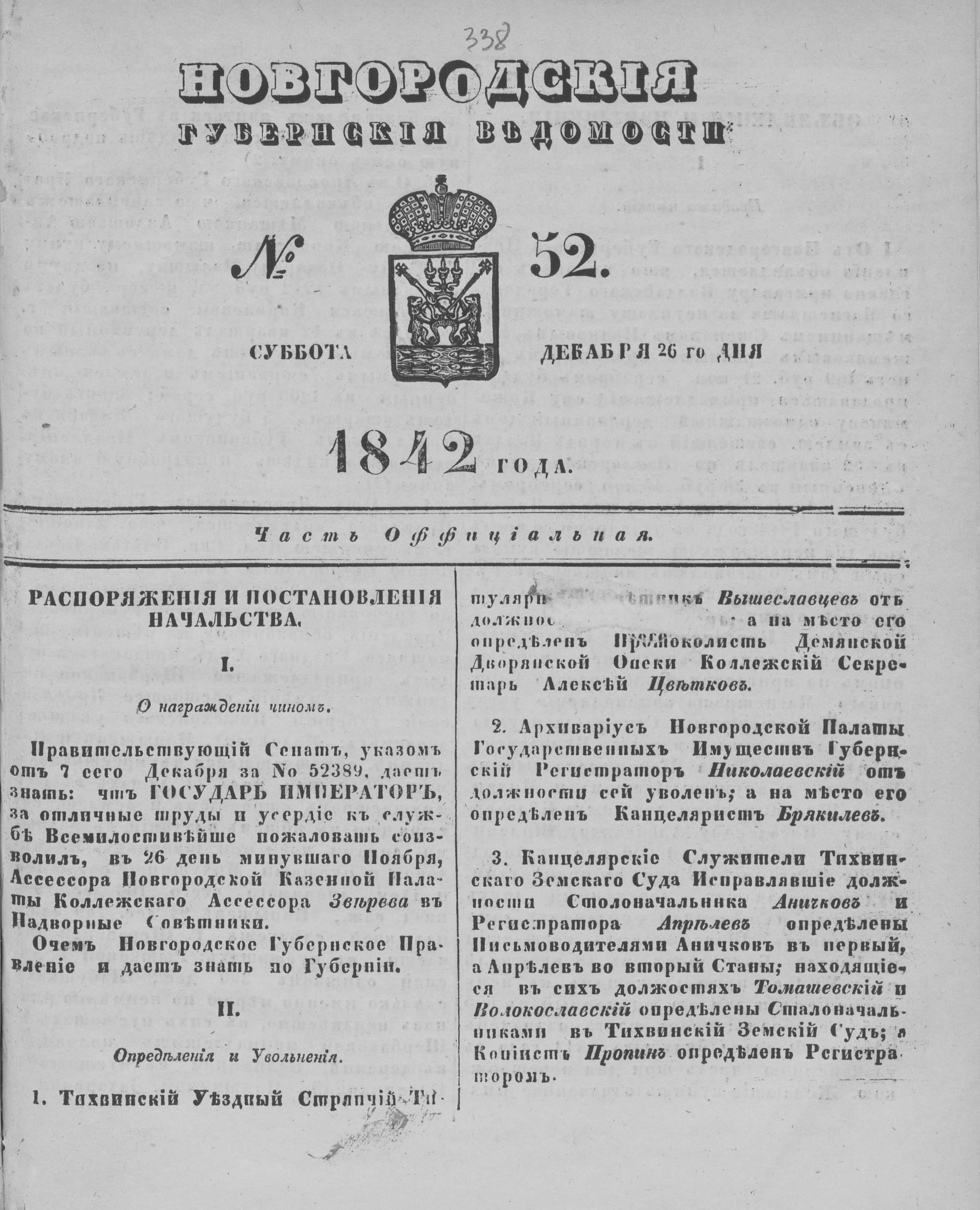 СУББОТА 26 ДЕКАБРЯ 1842 ГОДА