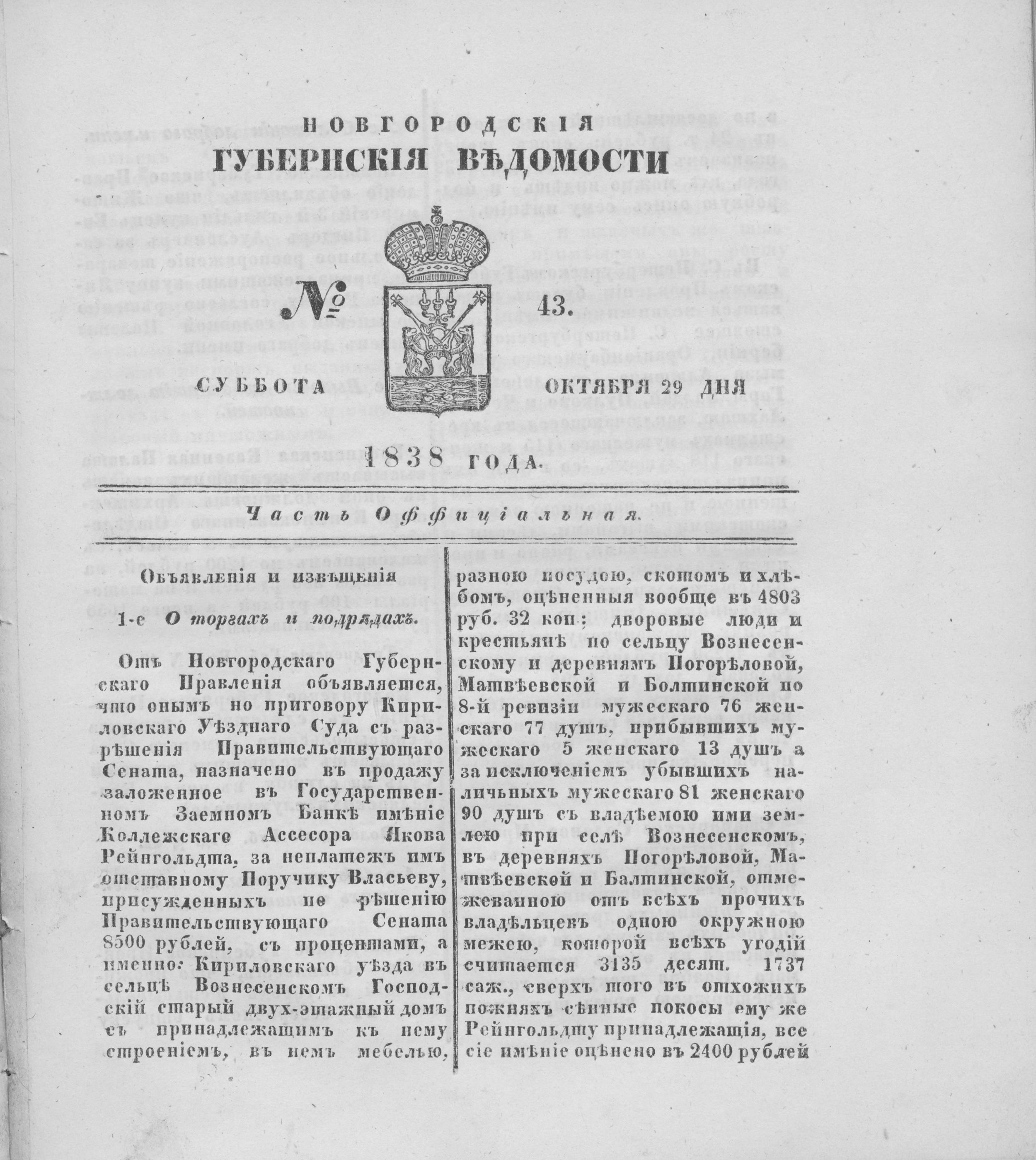 НОВГОРОДСКИЕ ГУБЕРНСКИЕ ВЕДОМОСТИ
