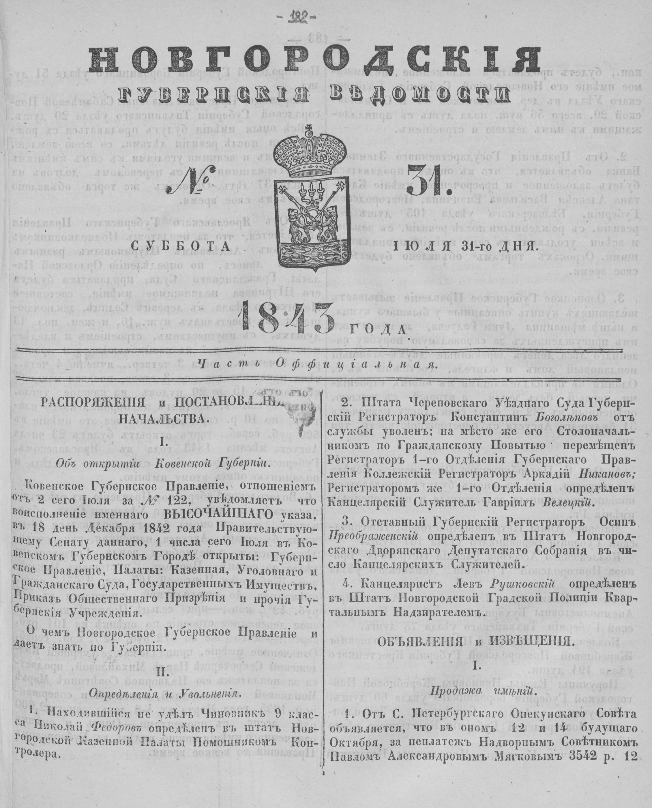 НОВГОРОДСКИЕ ГУБЕРНСКИЕ ВЕДОМОСТИ