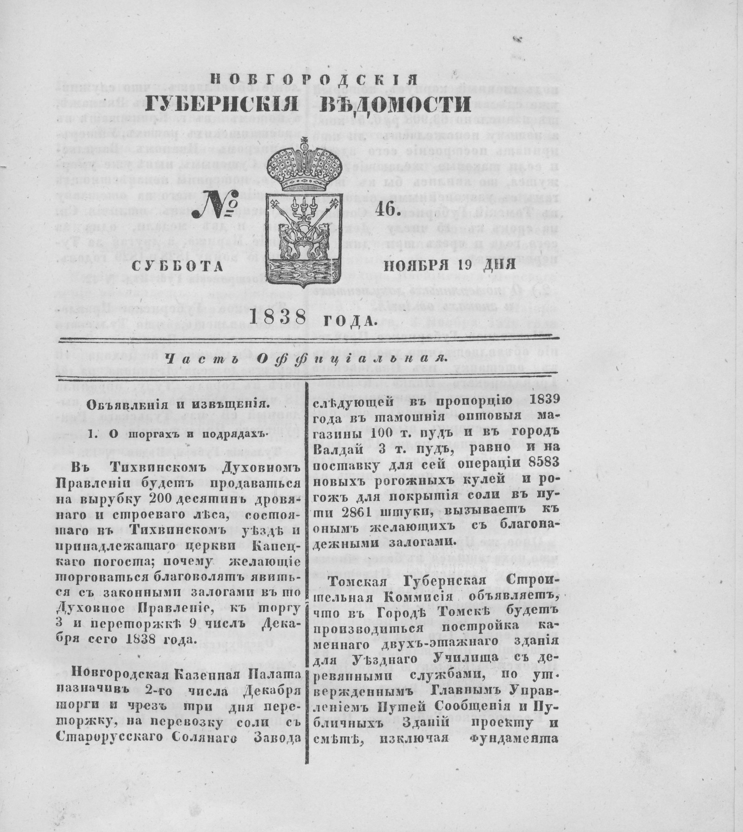 НОВГОРОДСКИЕ ГУБЕРНСКИЕ ВЕДОМОСТИ