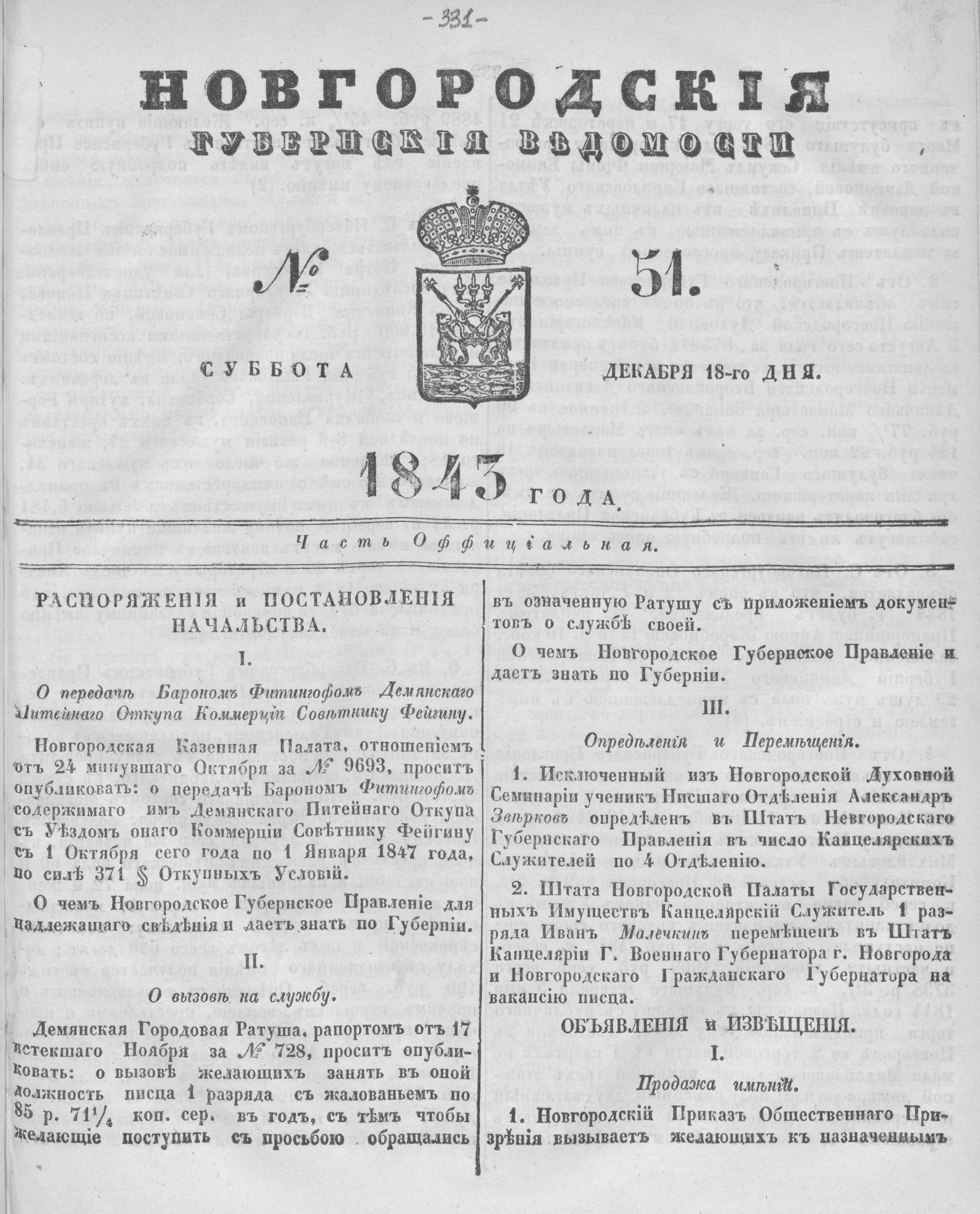 НОВГОРОДСКИЕ ГУБЕРНСКИЕ ВЕДОМОСТИ