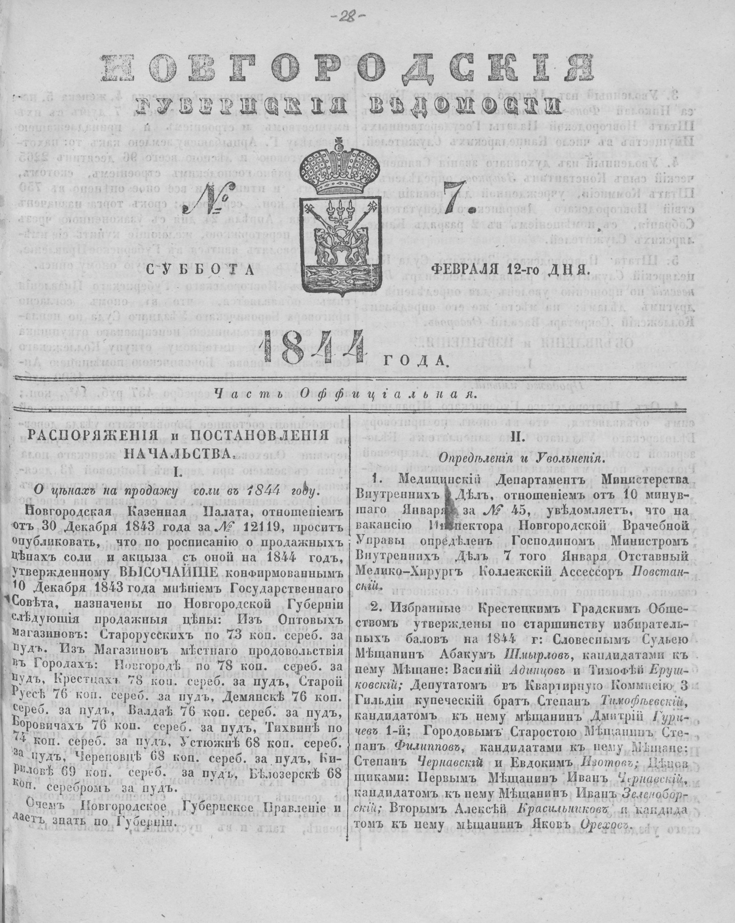 НОВГОРОДСКИЕ ГУБЕРНСКИЕ ВЕДОМОСТИ