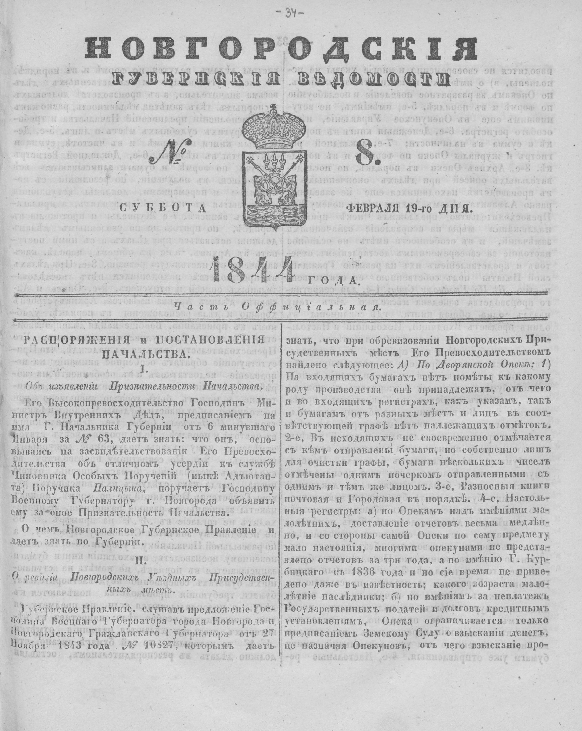 СУББОТА 19 ФЕВРАЛЯ 1844 ГОДА