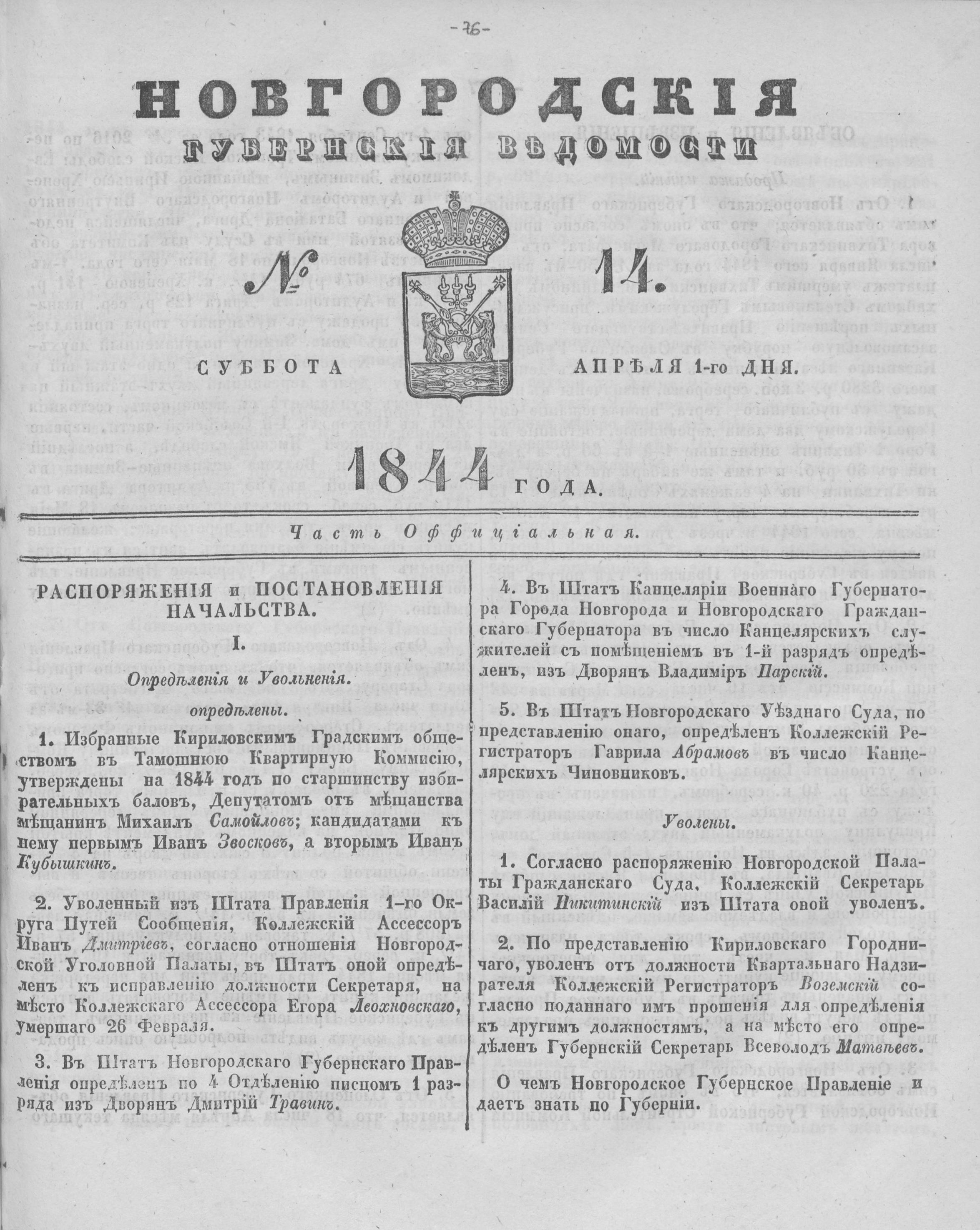 НОВГОРОДСКИЕ ГУБЕРНСКИЕ ВЕДОМОСТИ