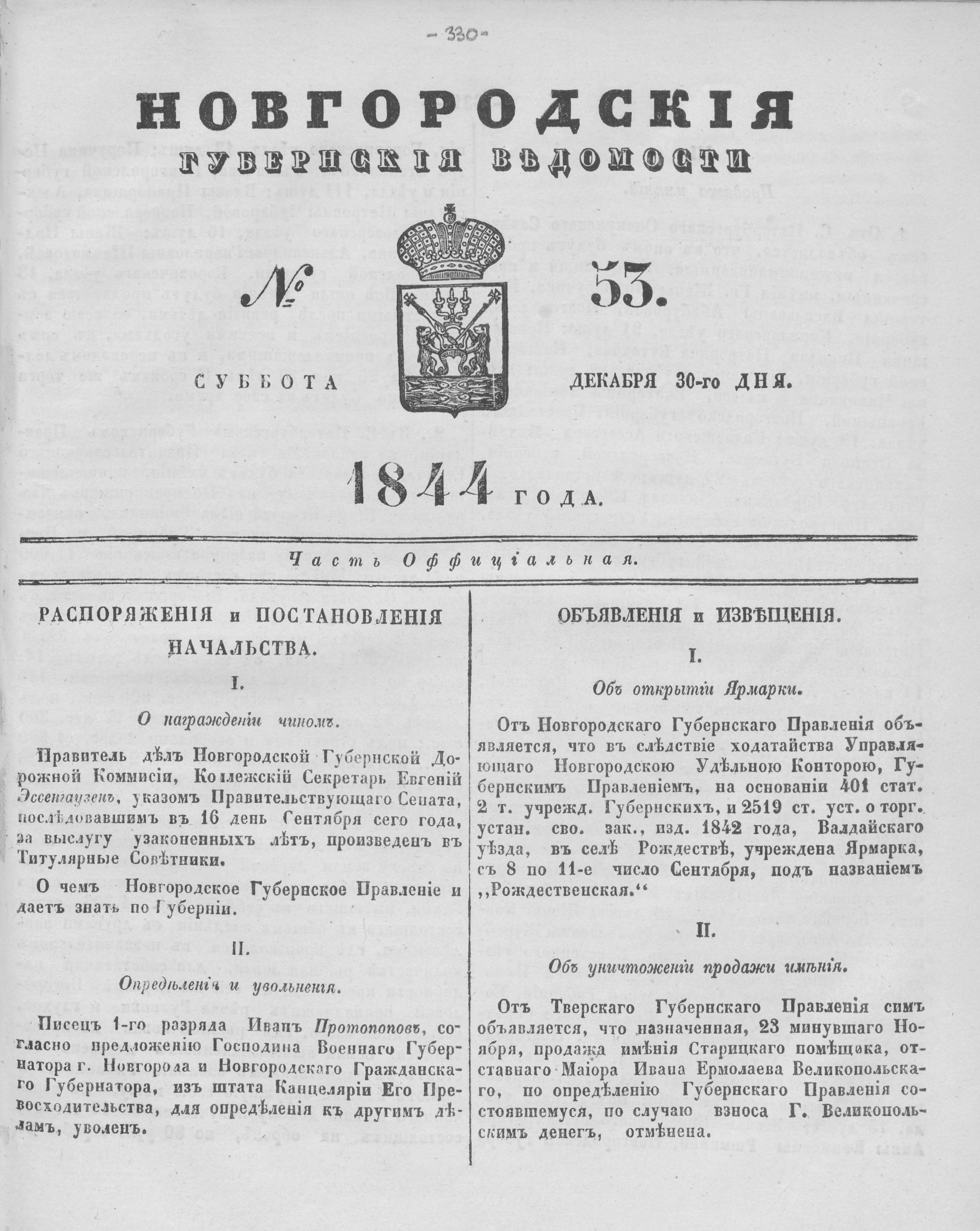 НОВГОРОДСКИЕ ГУБЕРНСКИЕ ВЕДОМОСТИ