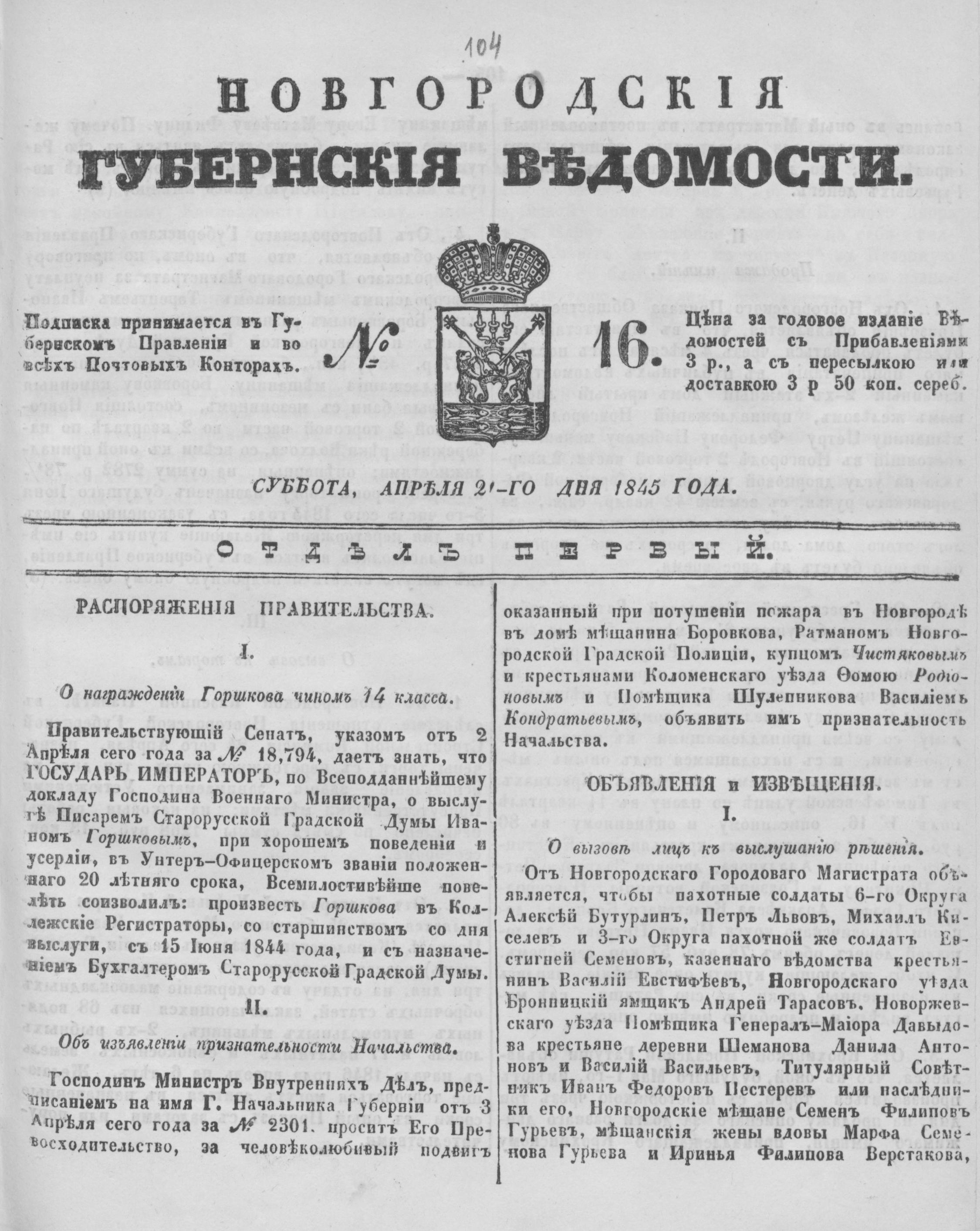 НОВГОРОДСКИЕ ГУБЕРНСКИЕ ВЕДОМОСТИ