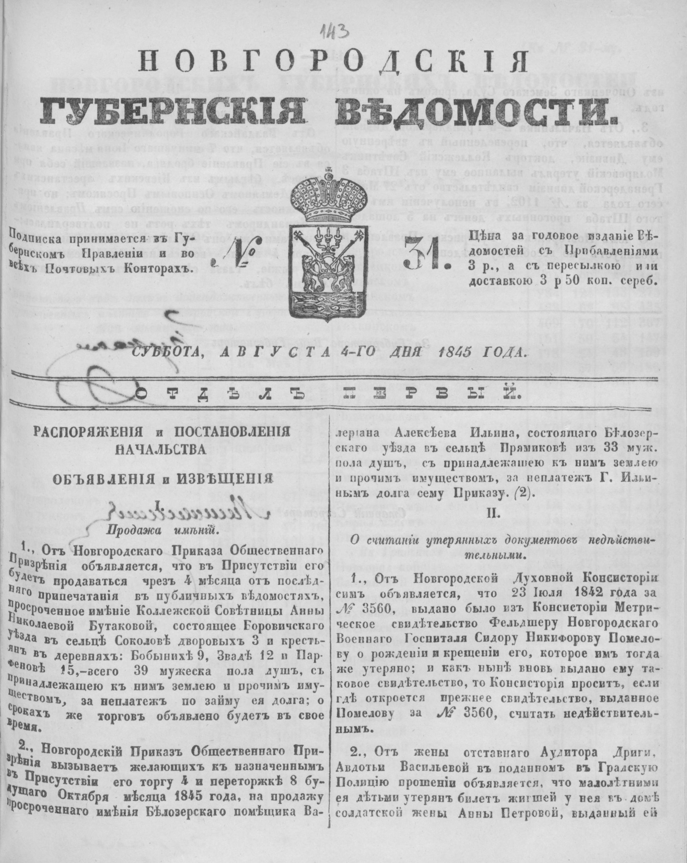 НОВГОРОДСКИЕ ГУБЕРНСКИЕ ВЕДОМОСТИ