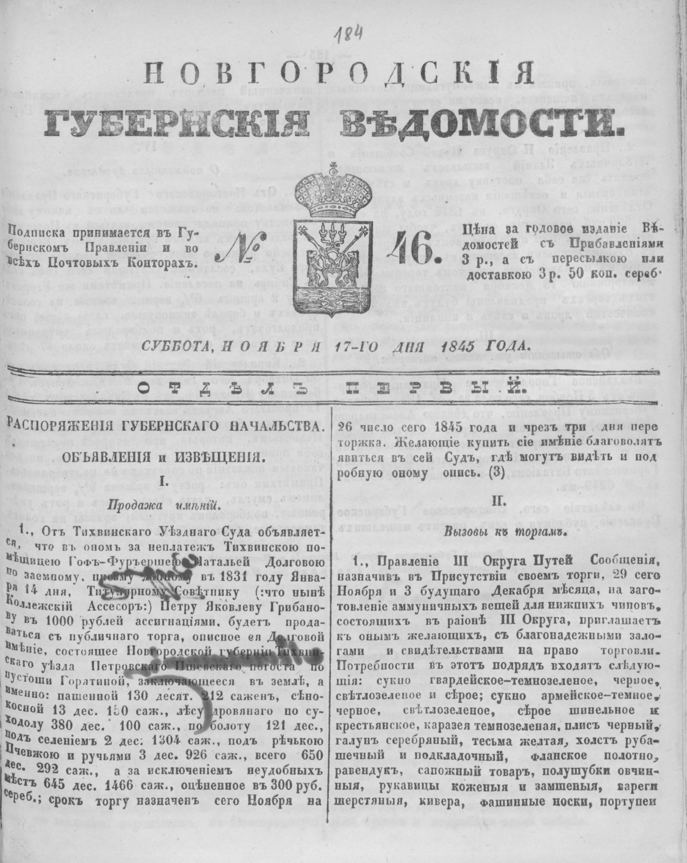 НОВГОРОДСКИЕ ГУБЕРНСКИЕ ВЕДОМОСТИ