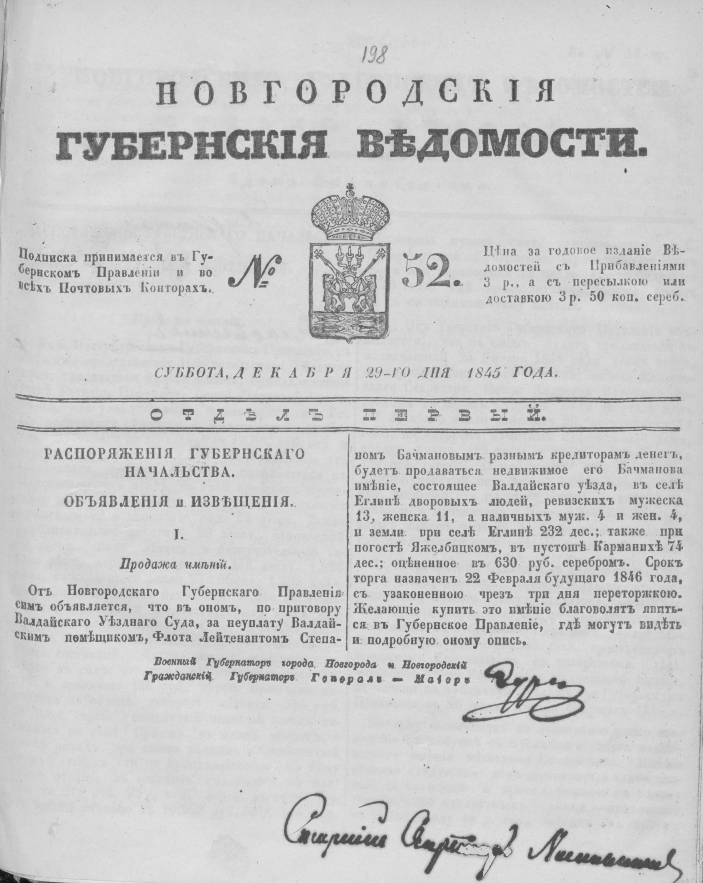 СУББОТА 29 ДЕКАБРЯ 1845 ГОДА