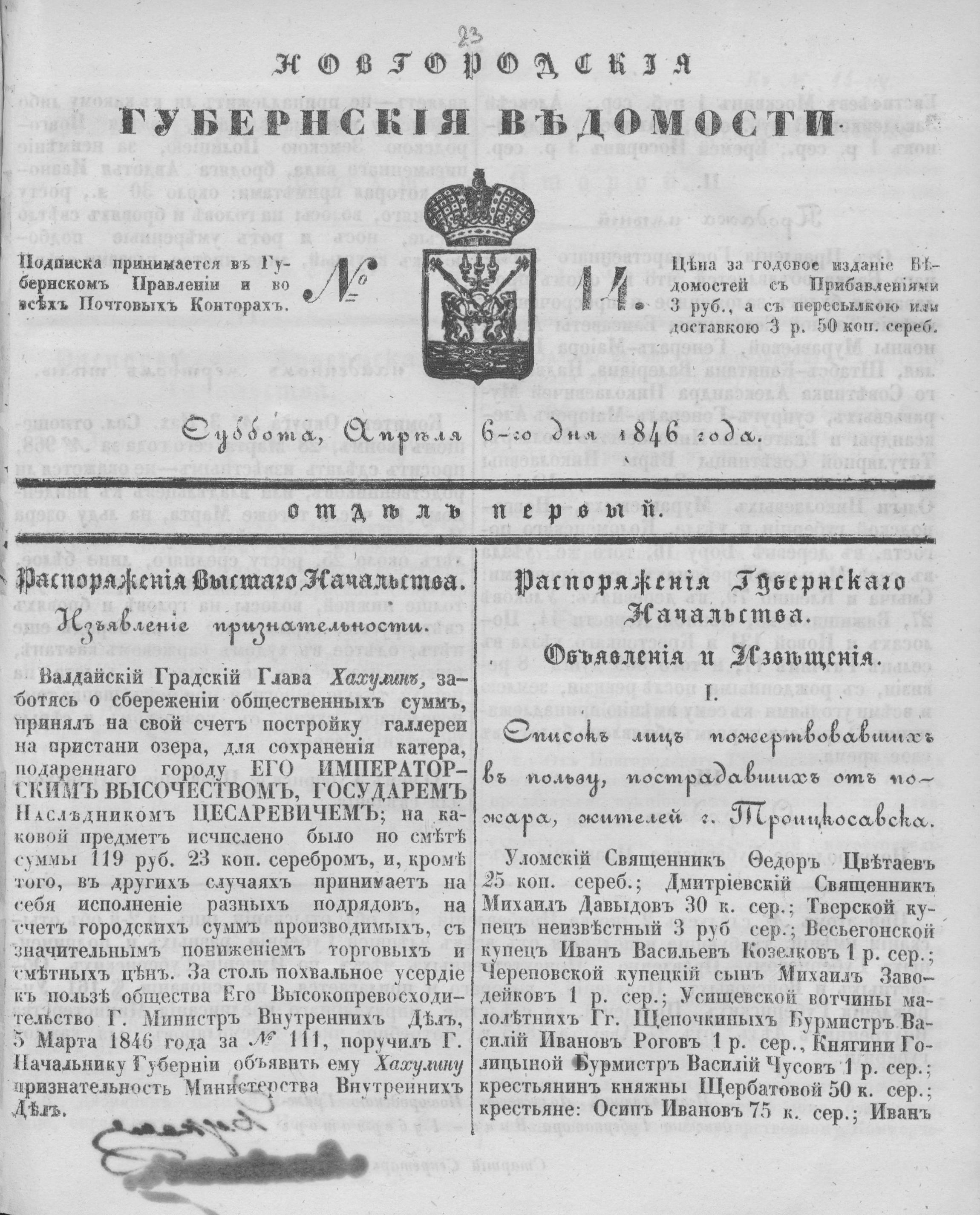НОВГОРОДСКИЕ ГУБЕРНСКИЕ ВЕДОМОСТИ