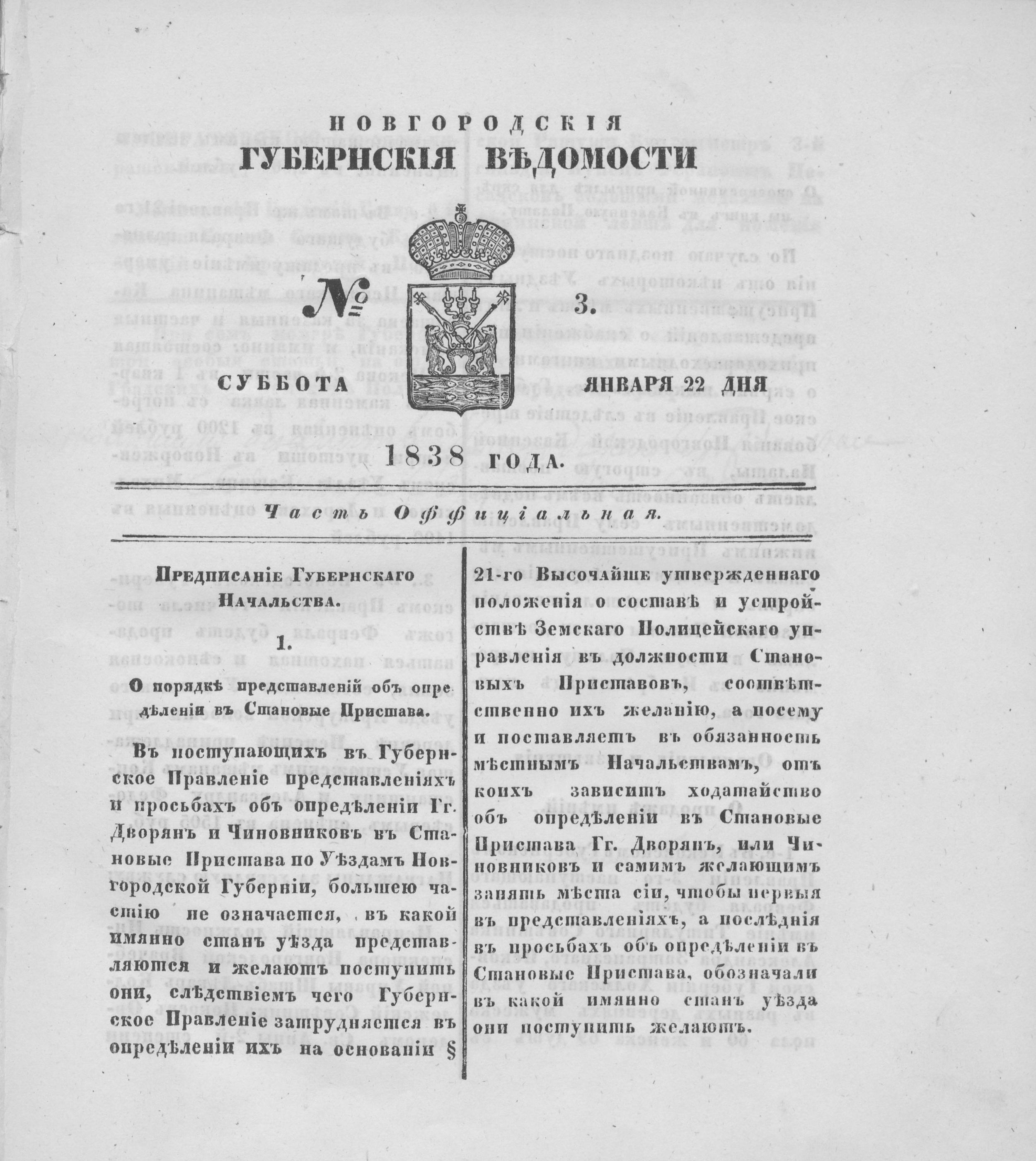 №3. Суббота, 22 января,1838 год