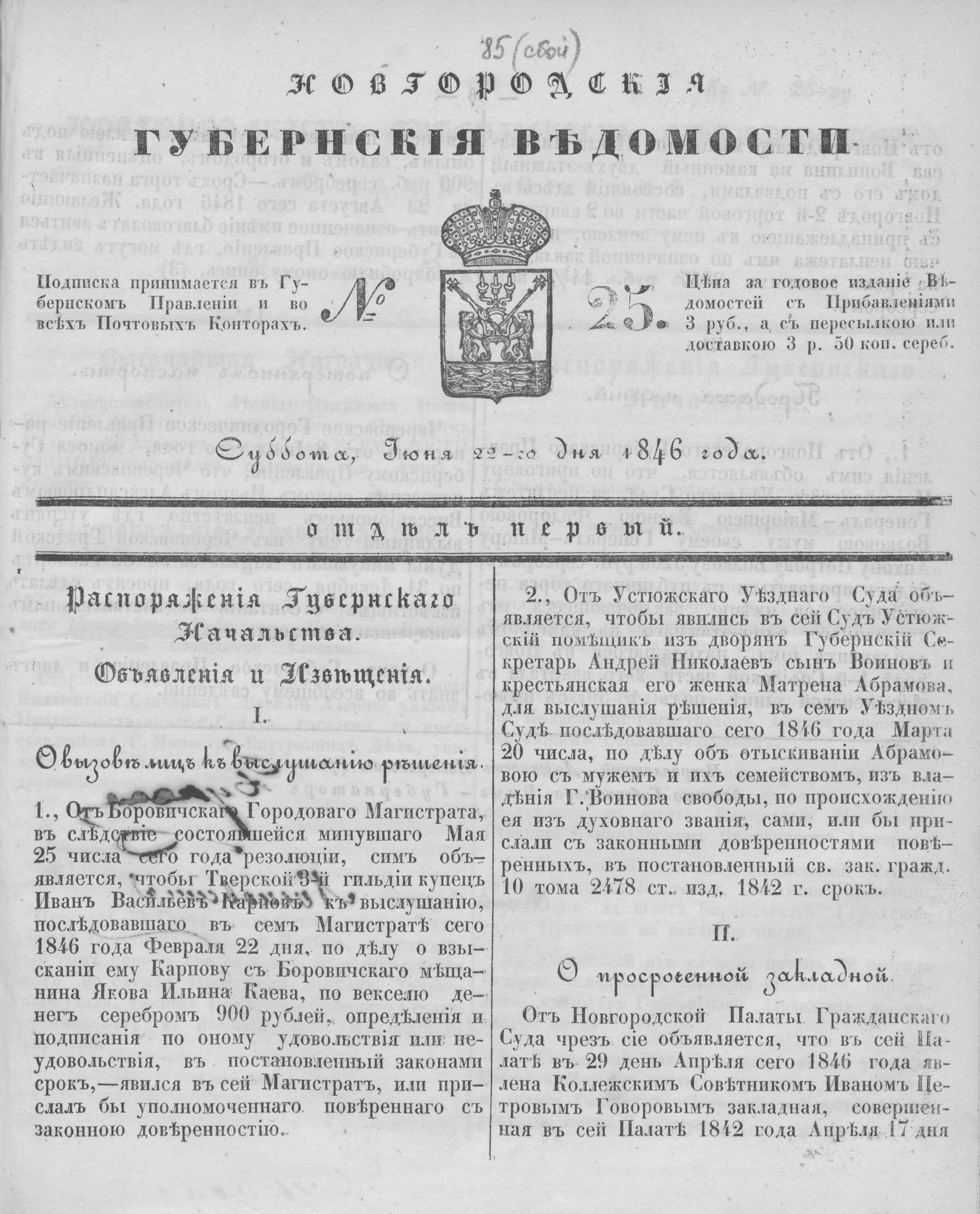 № 25, 22 июня 1846 года