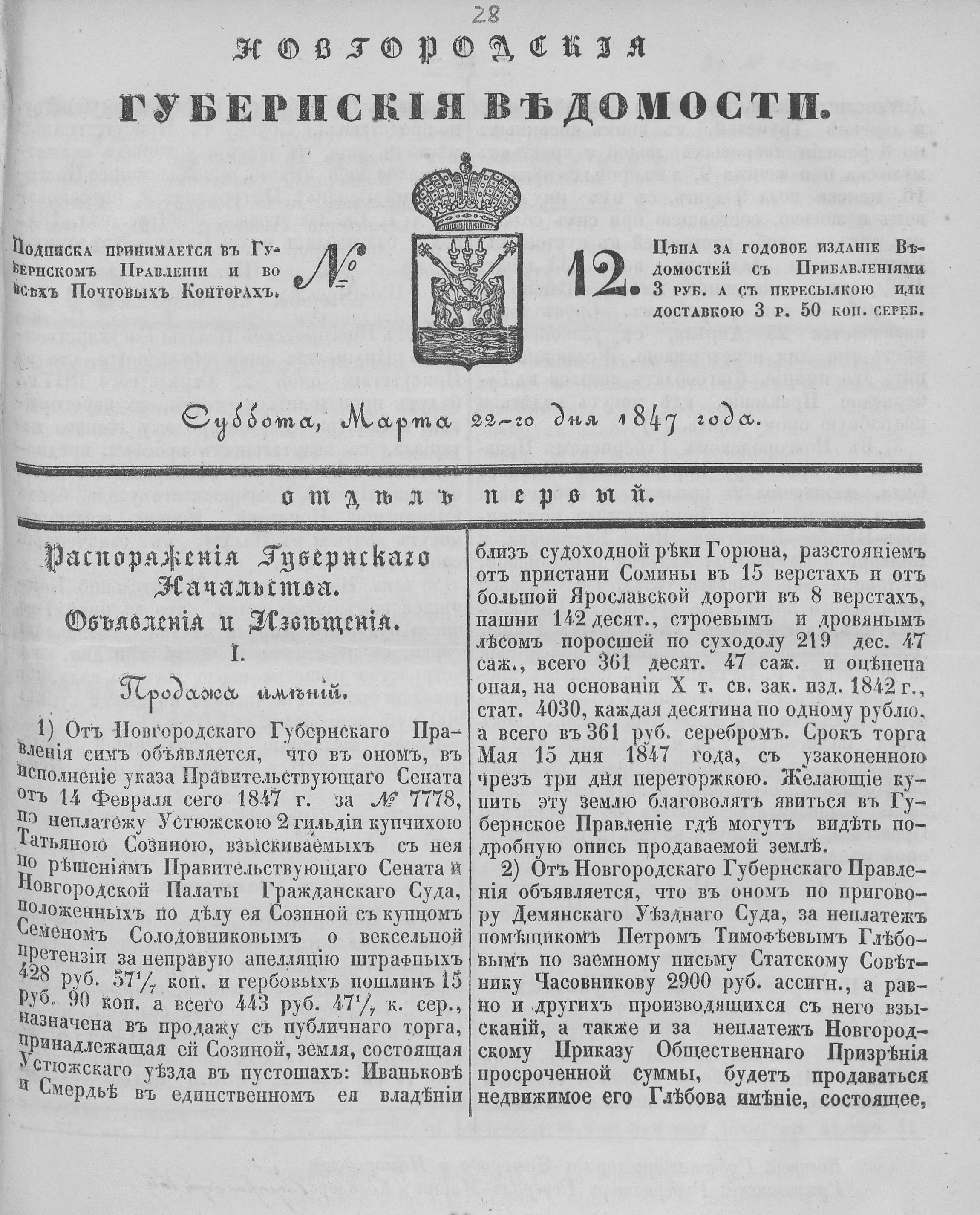 НОВГОРОДСКИЕ ГУБЕРНСКИЕ ВЕДОМОСТИ