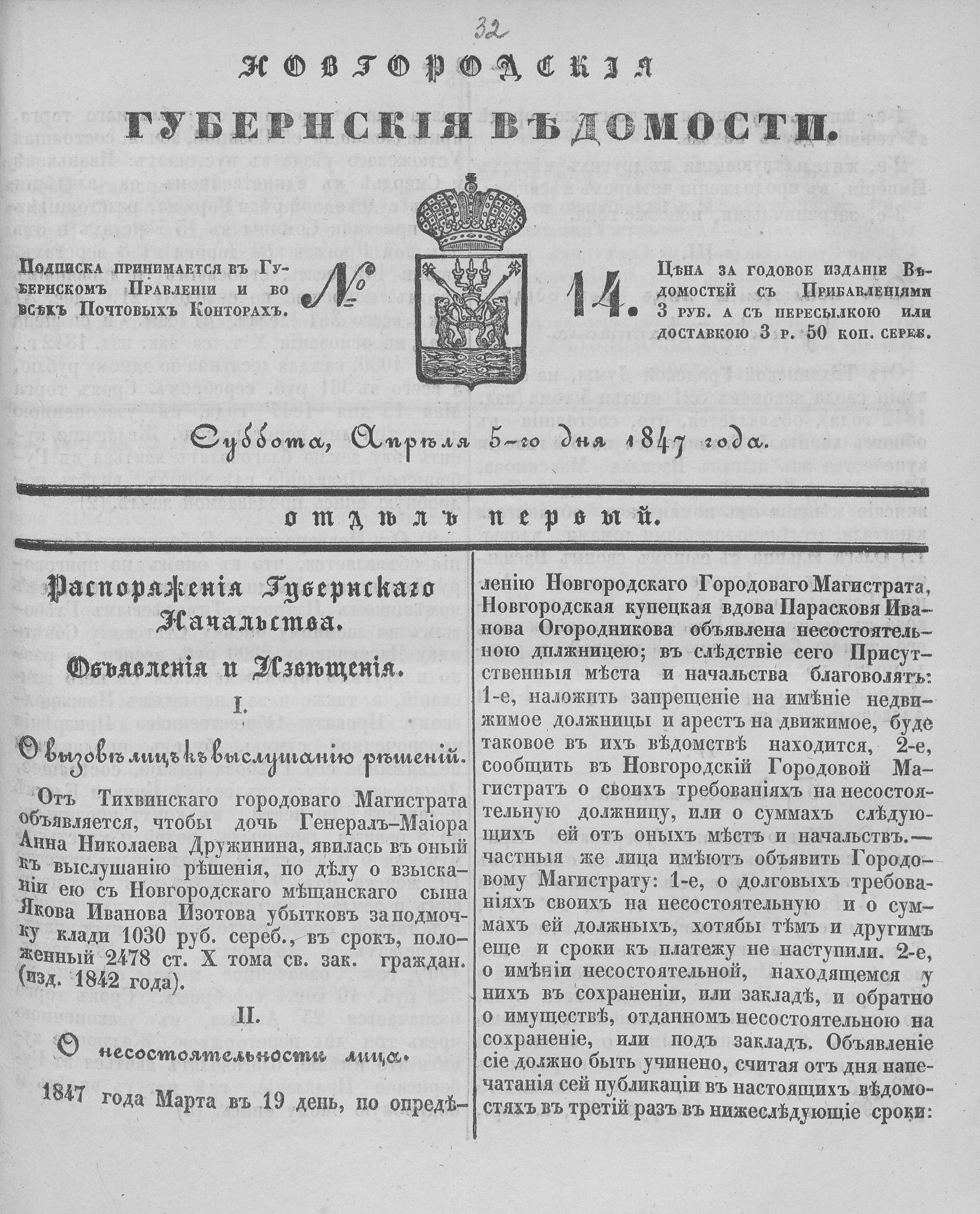 НОВГОРОДСКИЕ ГУБЕРНСКИЕ ВЕДОМОСТИ