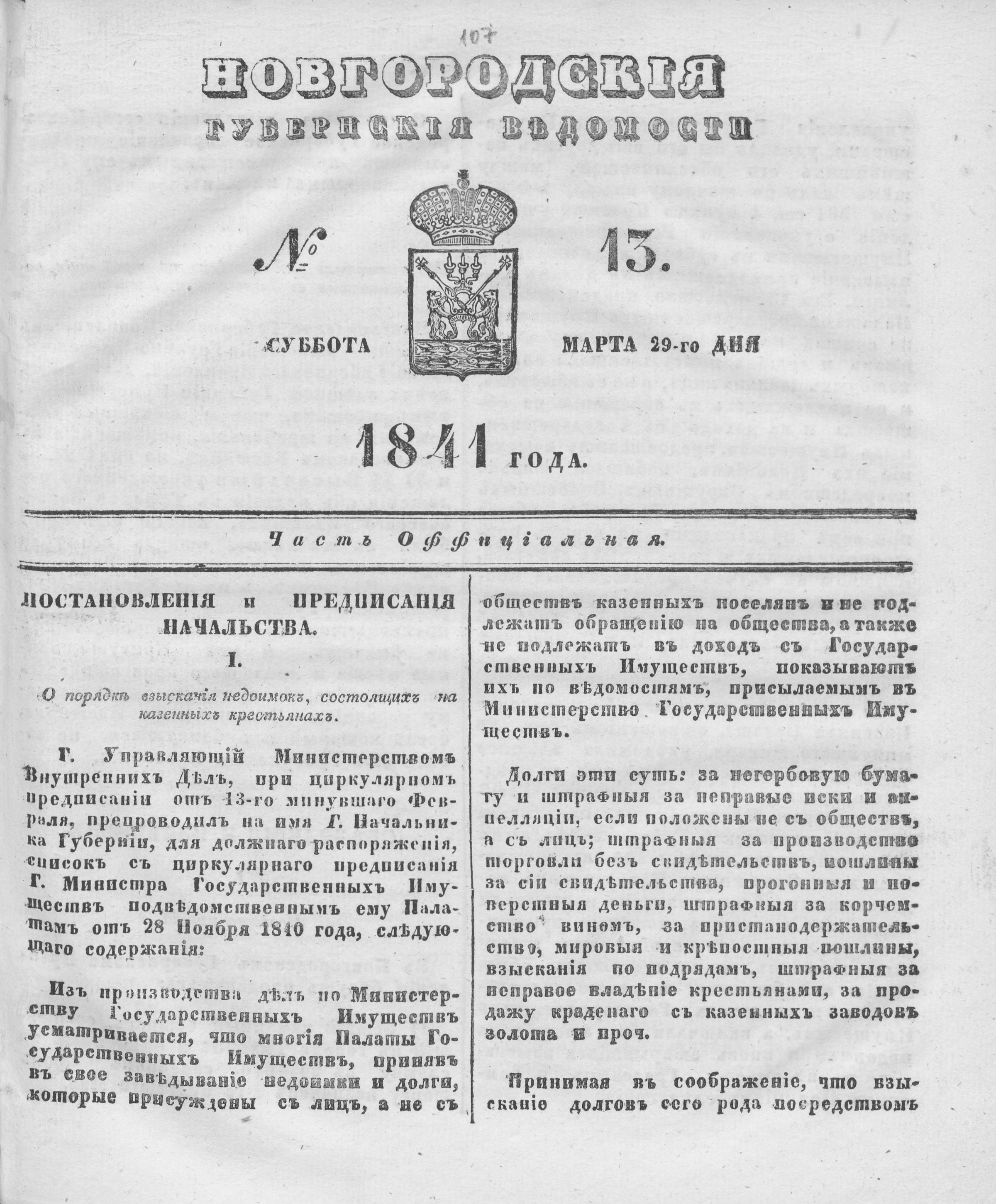 №13. Суббота, 29 марта,1841 год