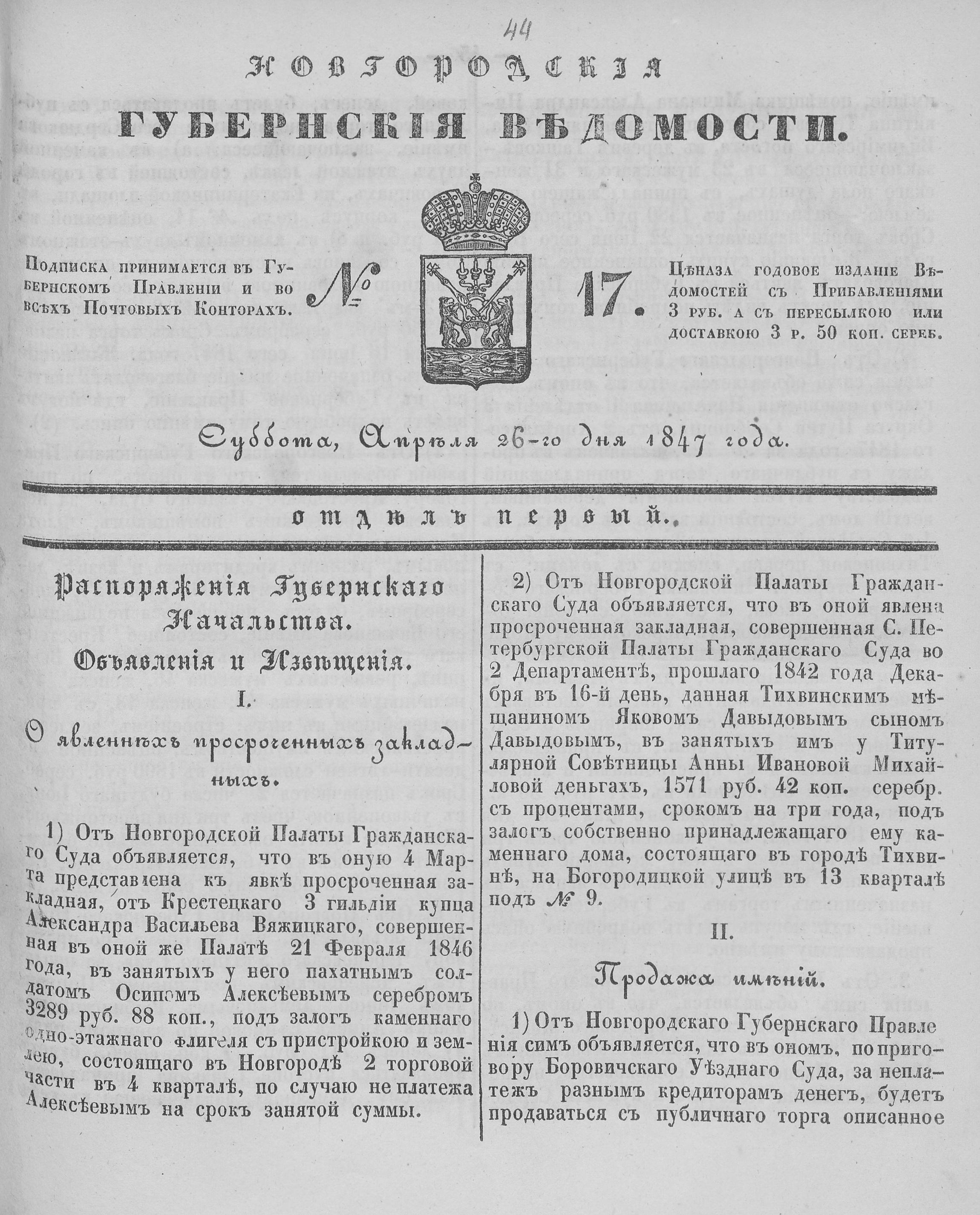 № 17, 26 апреля 1847 года