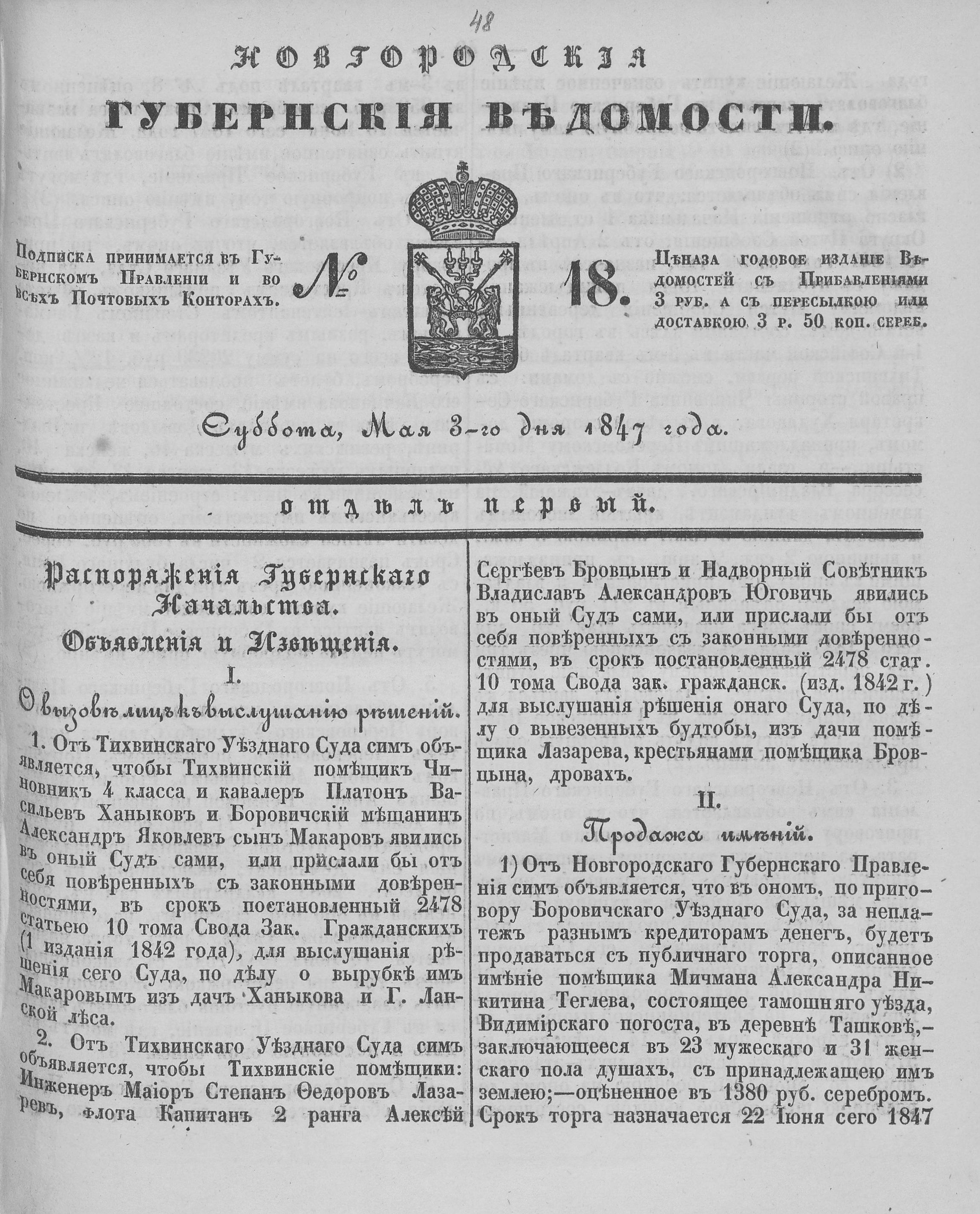 НОВГОРОДСКИЕ ГУБЕРНСКИЕ ВЕДОМОСТИ