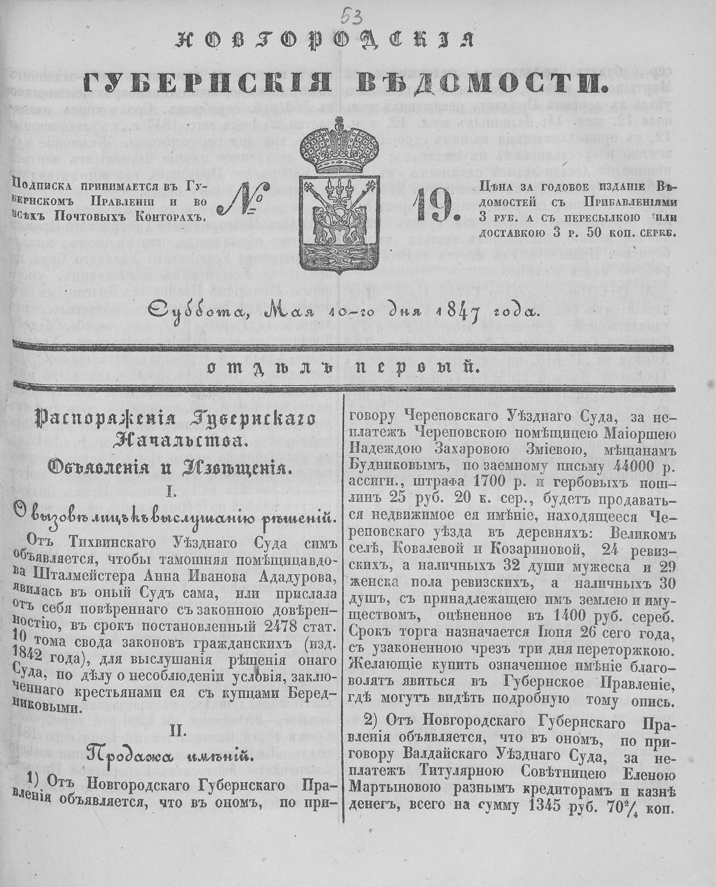 НОВГОРОДСКИЕ ГУБЕРНСКИЕ ВЕДОМОСТИ