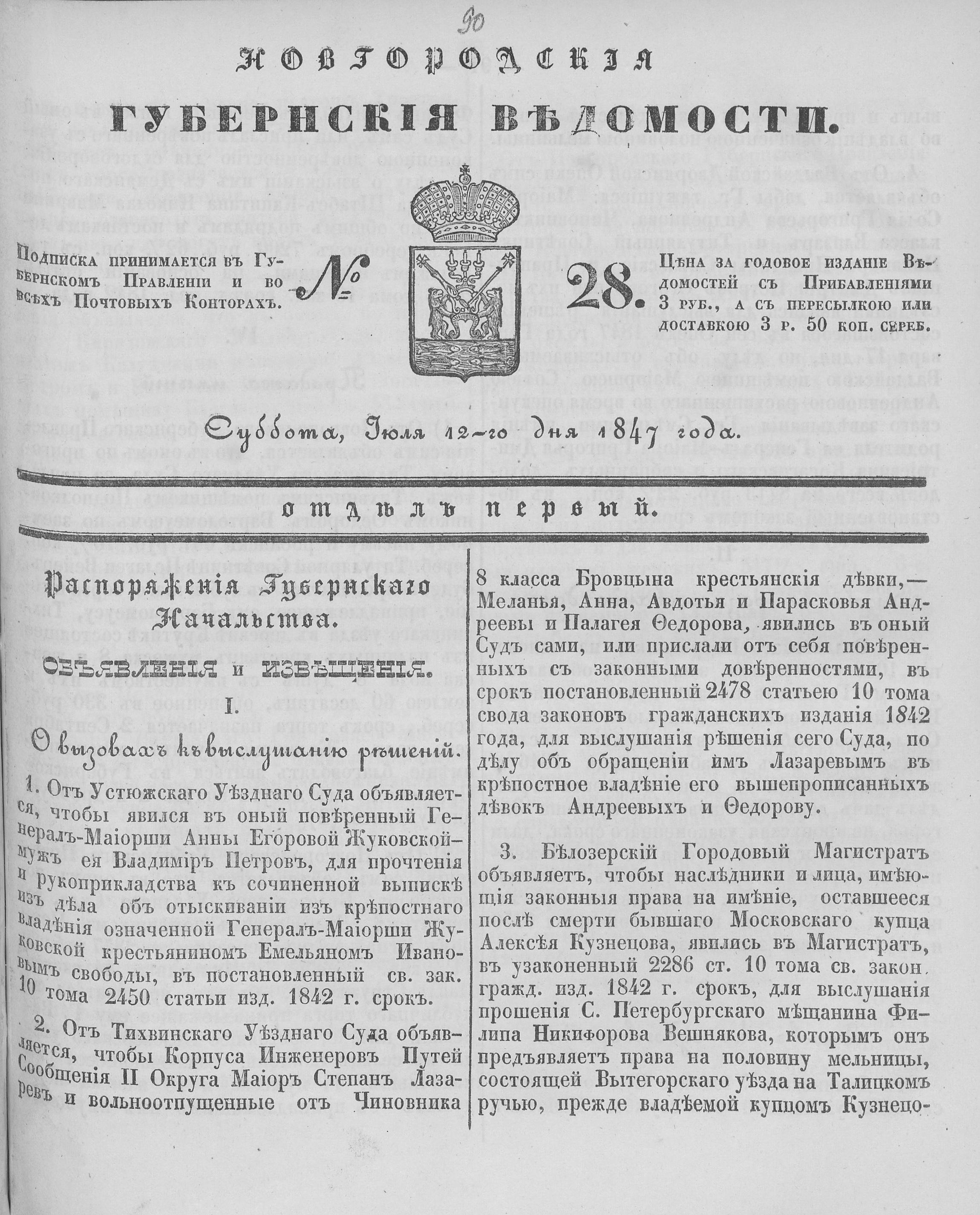 НОВГОРОДСКИЕ ГУБЕРНСКИЕ ВЕДОМОСТИ