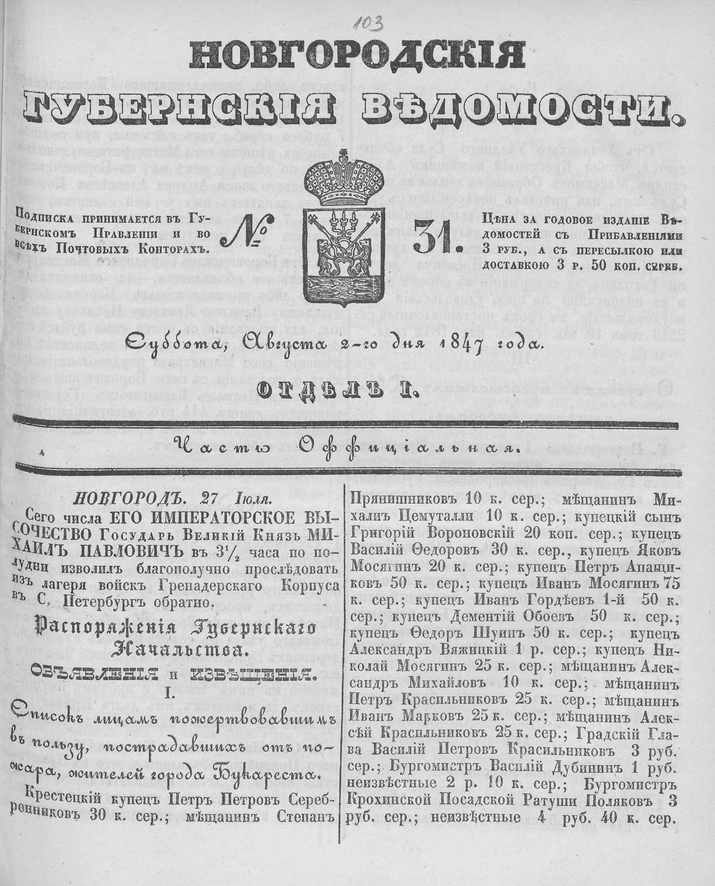 № 31, 2 августа 1847 года