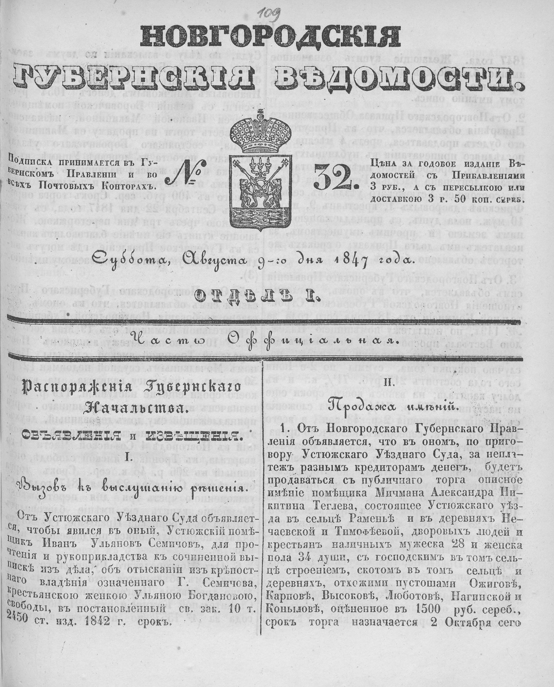 НОВГОРОДСКИЕ ГУБЕРНСКИЕ ВЕДОМОСТИ