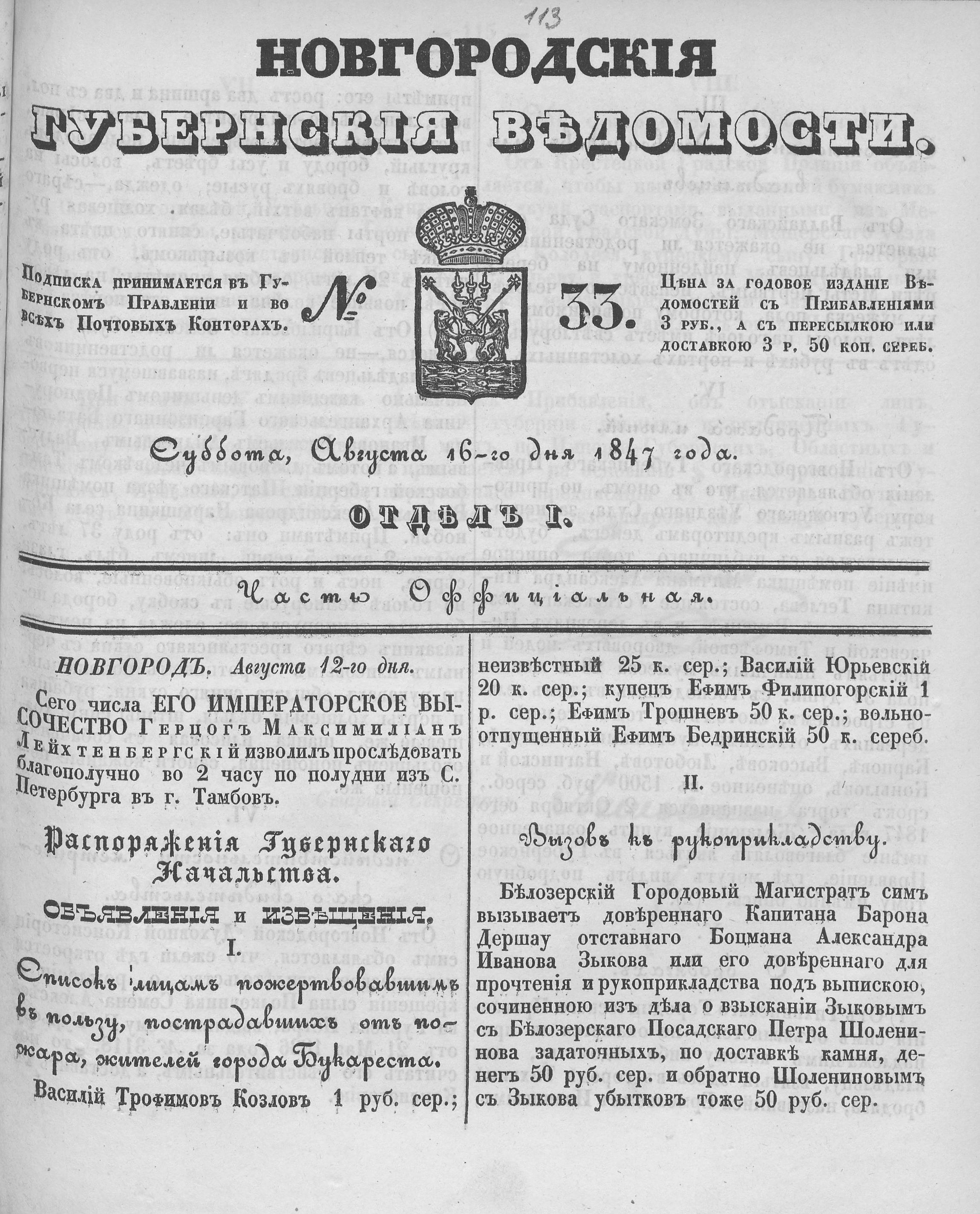 № 33, 16 августа 1847 года