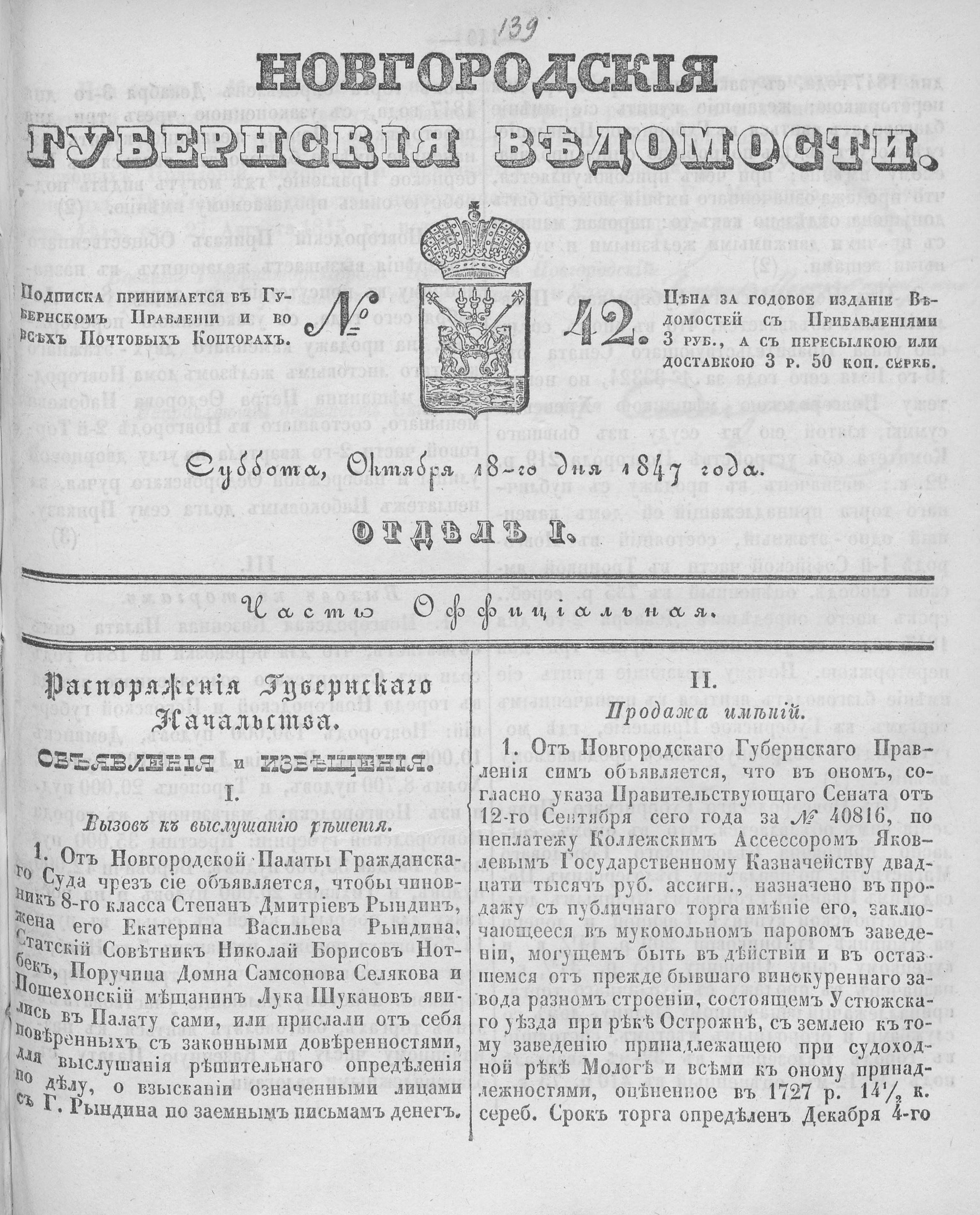 НОВГОРОДСКИЕ ГУБЕРНСКИЕ ВЕДОМОСТИ