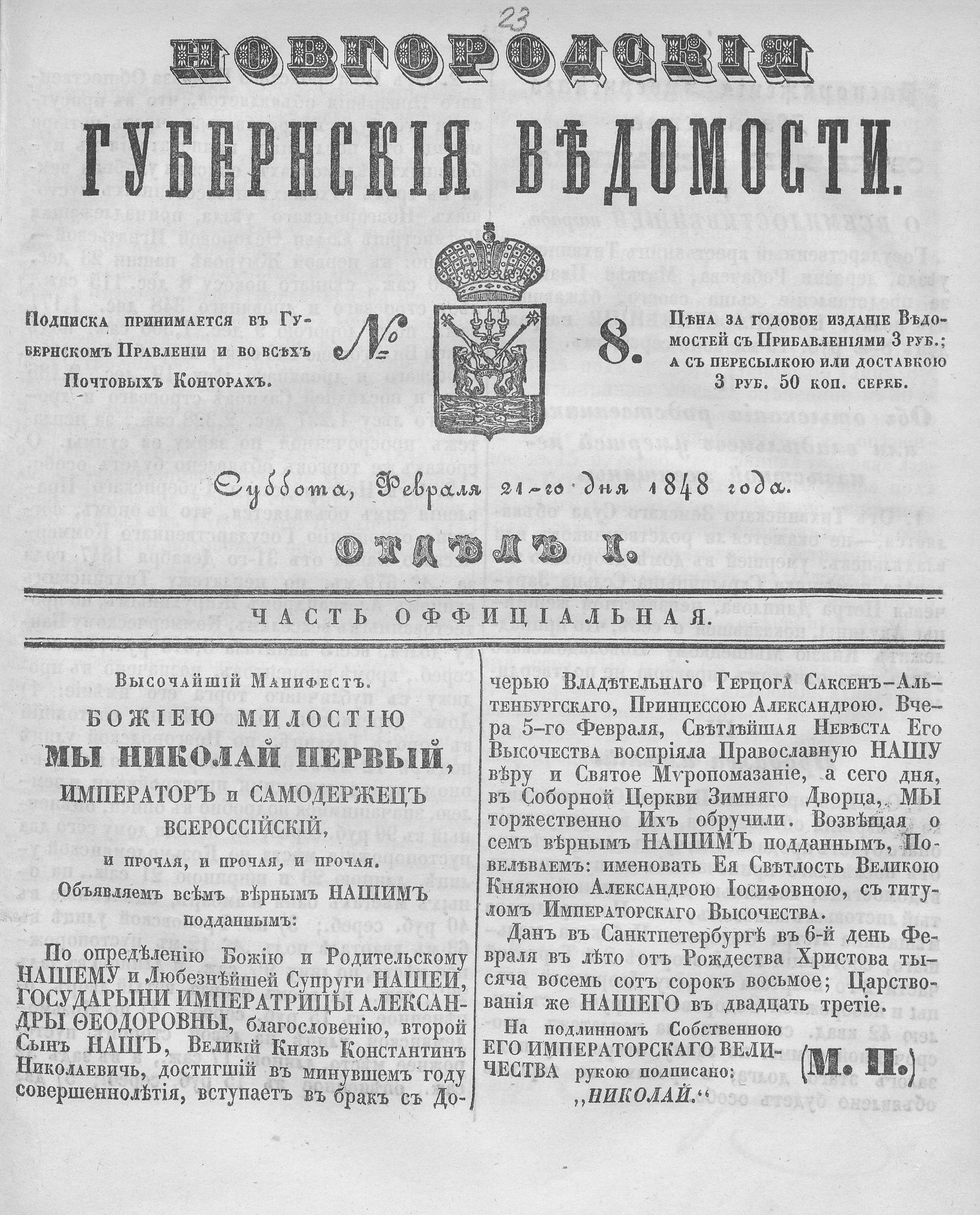 НОВГОРОДСКИЕ ГУБЕРНСКИЕ ВЕДОМОСТИ