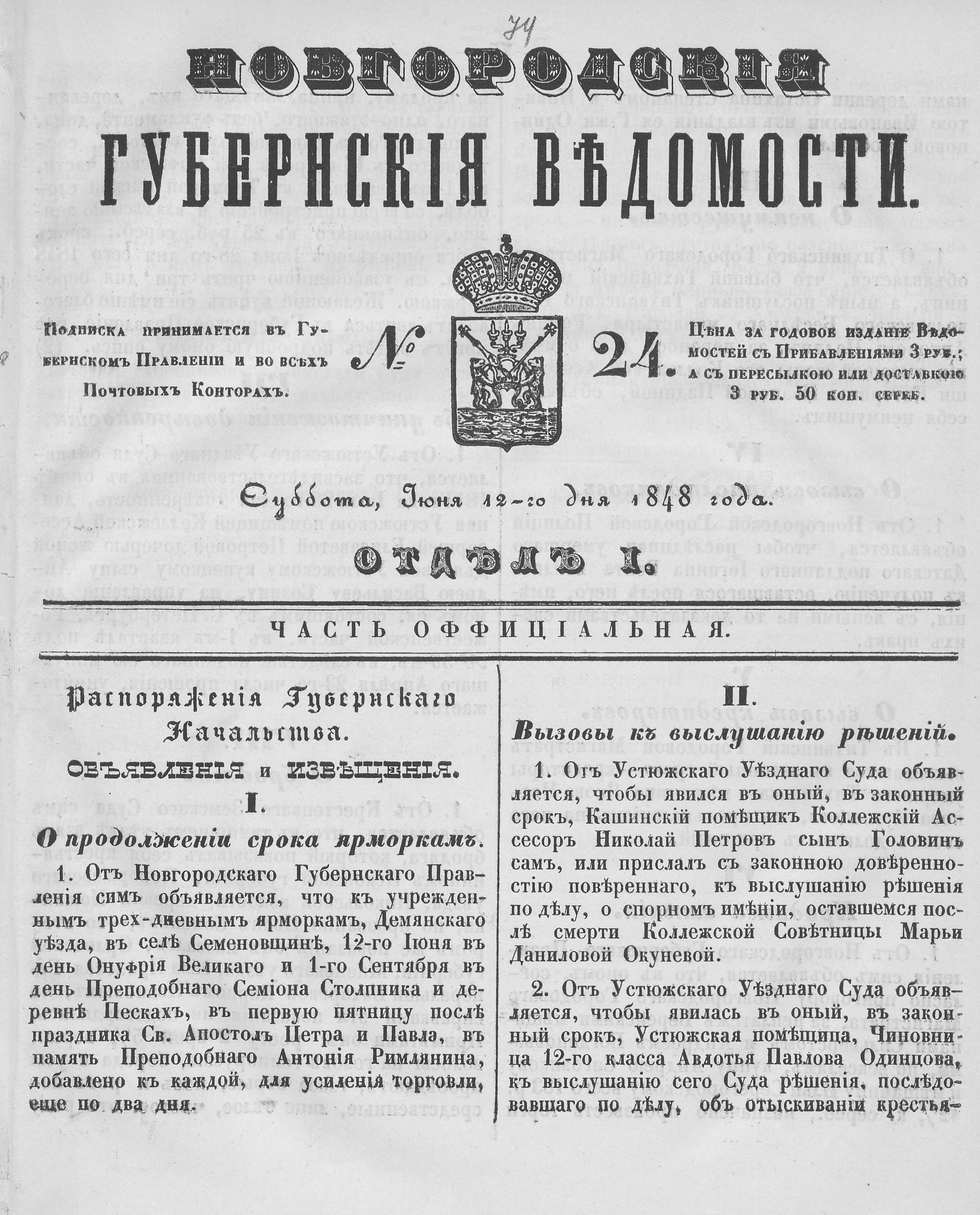 НОВГОРОДСКИЕ ГУБЕРНСКИЕ ВЕДОМОСТИ