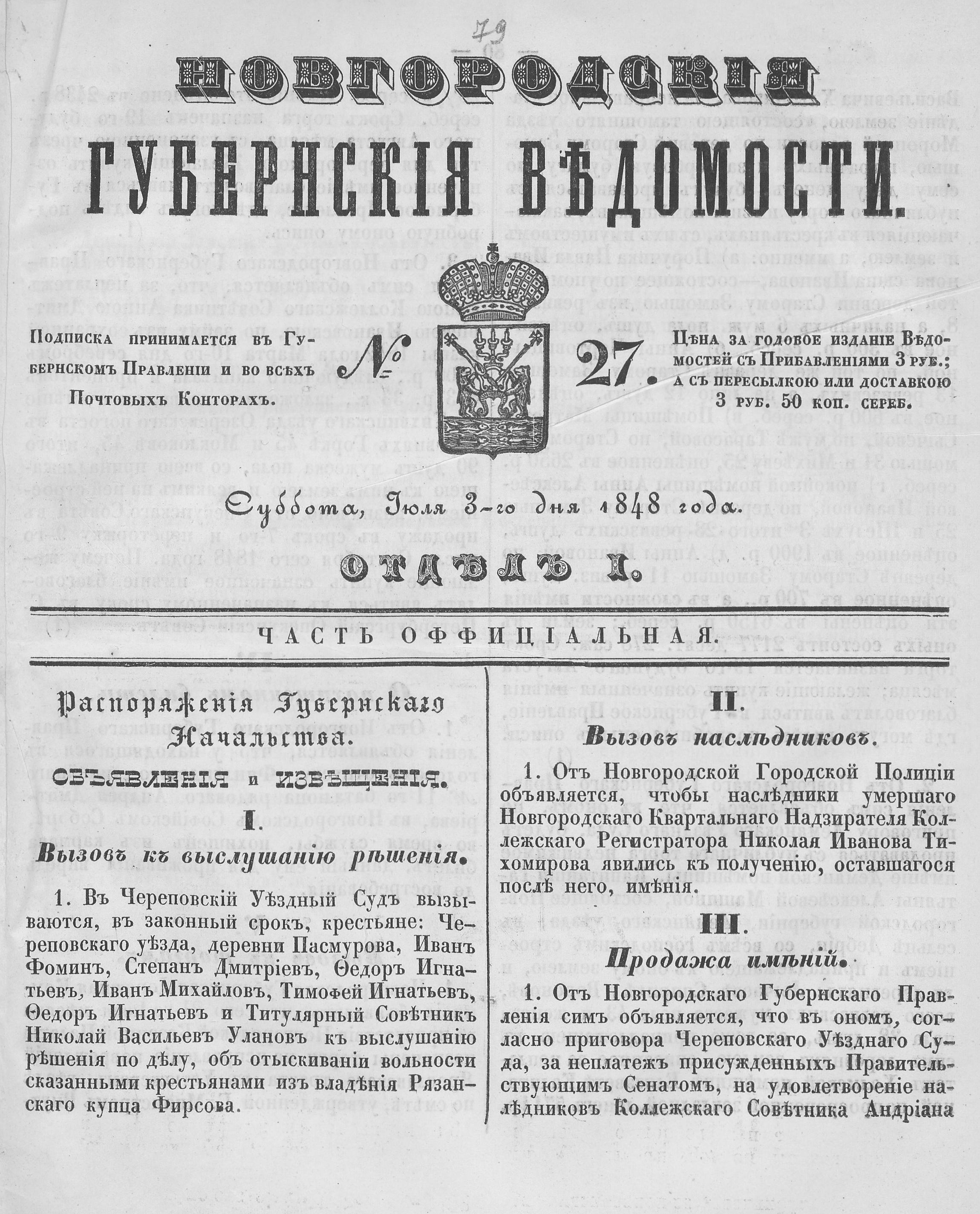 НОВГОРОДСКИЕ ГУБЕРНСКИЕ ВЕДОМОСТИ