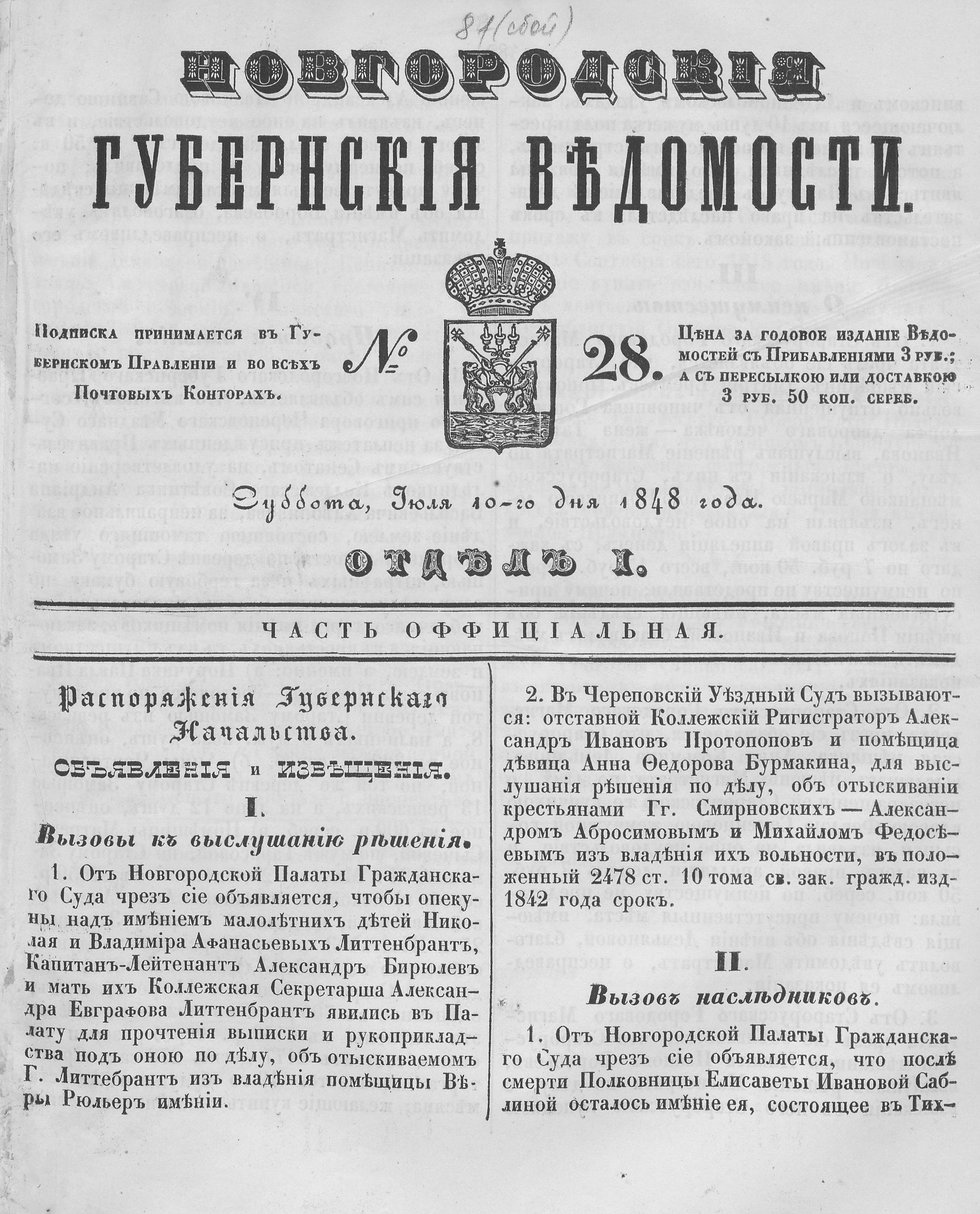 НОВГОРОДСКИЕ ГУБЕРНСКИЕ ВЕДОМОСТИ