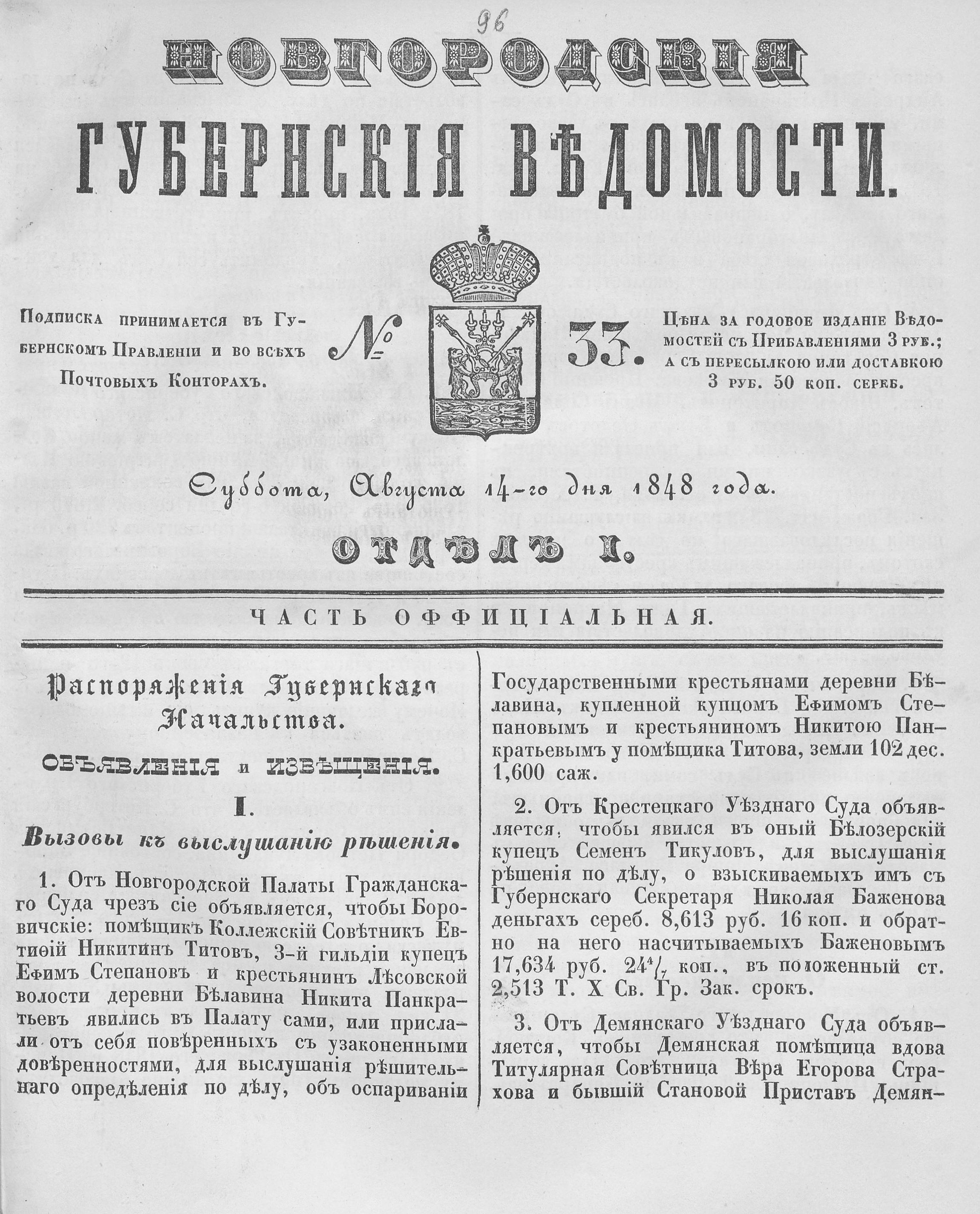 НОВГОРОДСКИЕ ГУБЕРНСКИЕ ВЕДОМОСТИ