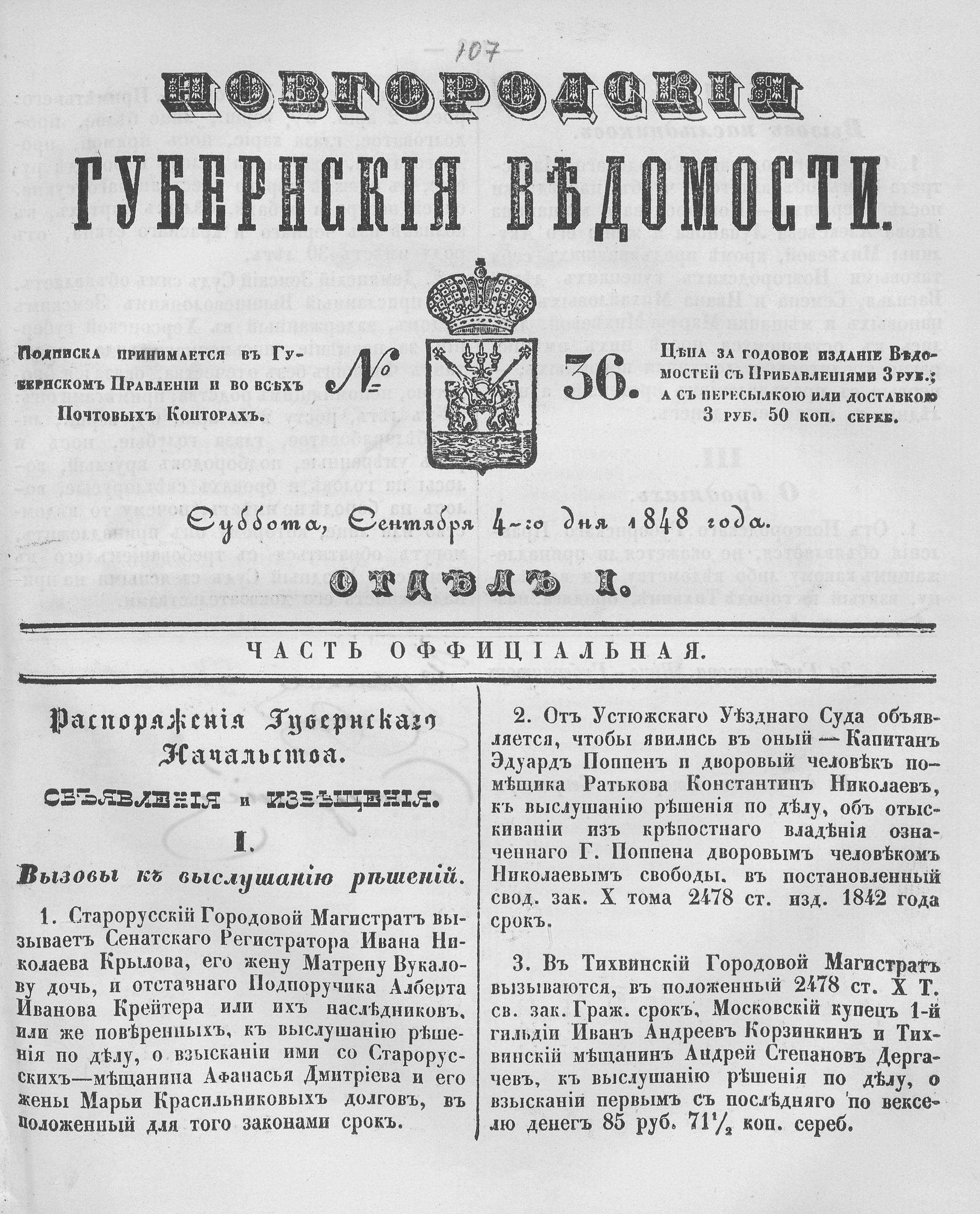 НОВГОРОДСКИЕ ГУБЕРНСКИЕ ВЕДОМОСТИ