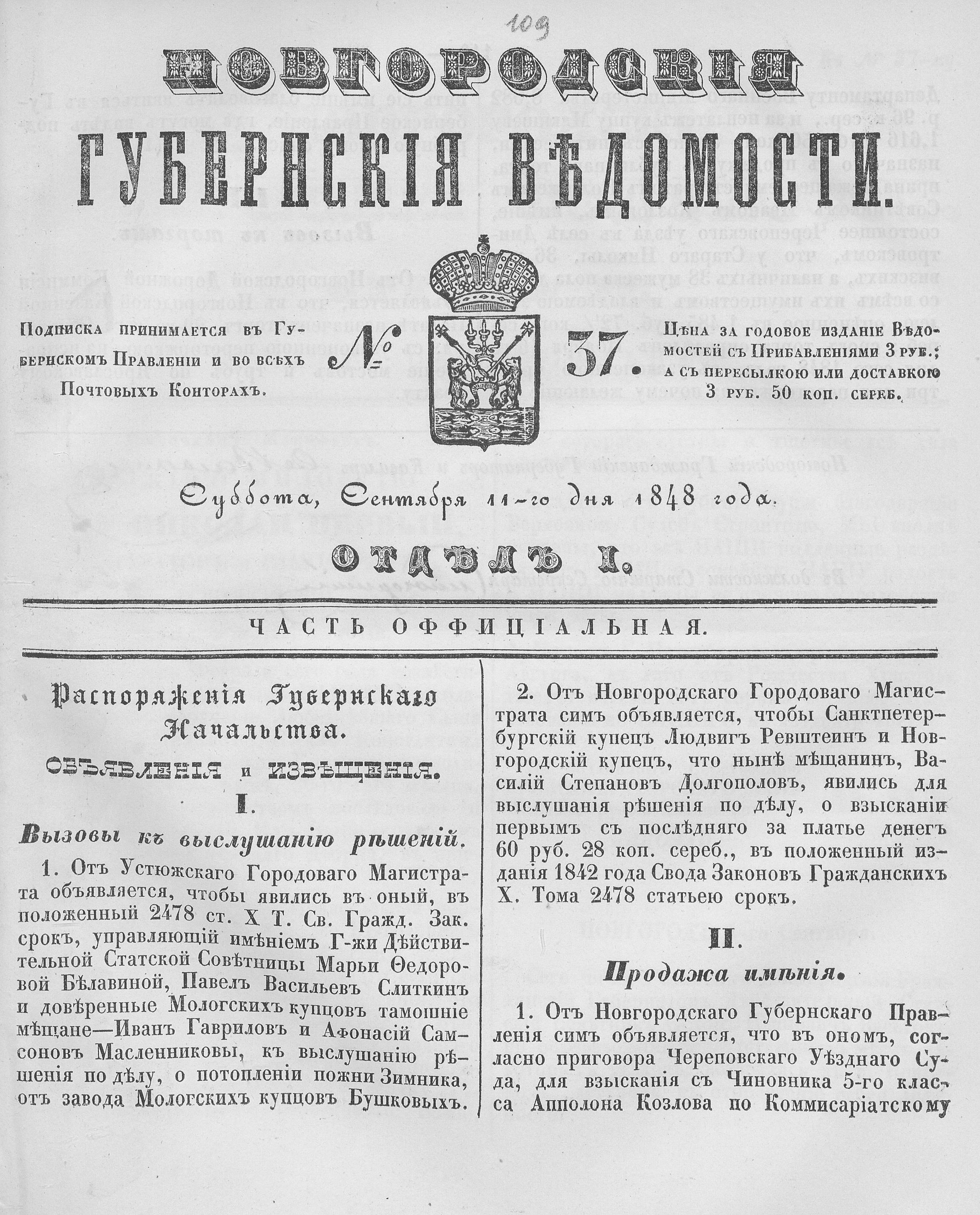 НОВГОРОДСКИЕ ГУБЕРНСКИЕ ВЕДОМОСТИ