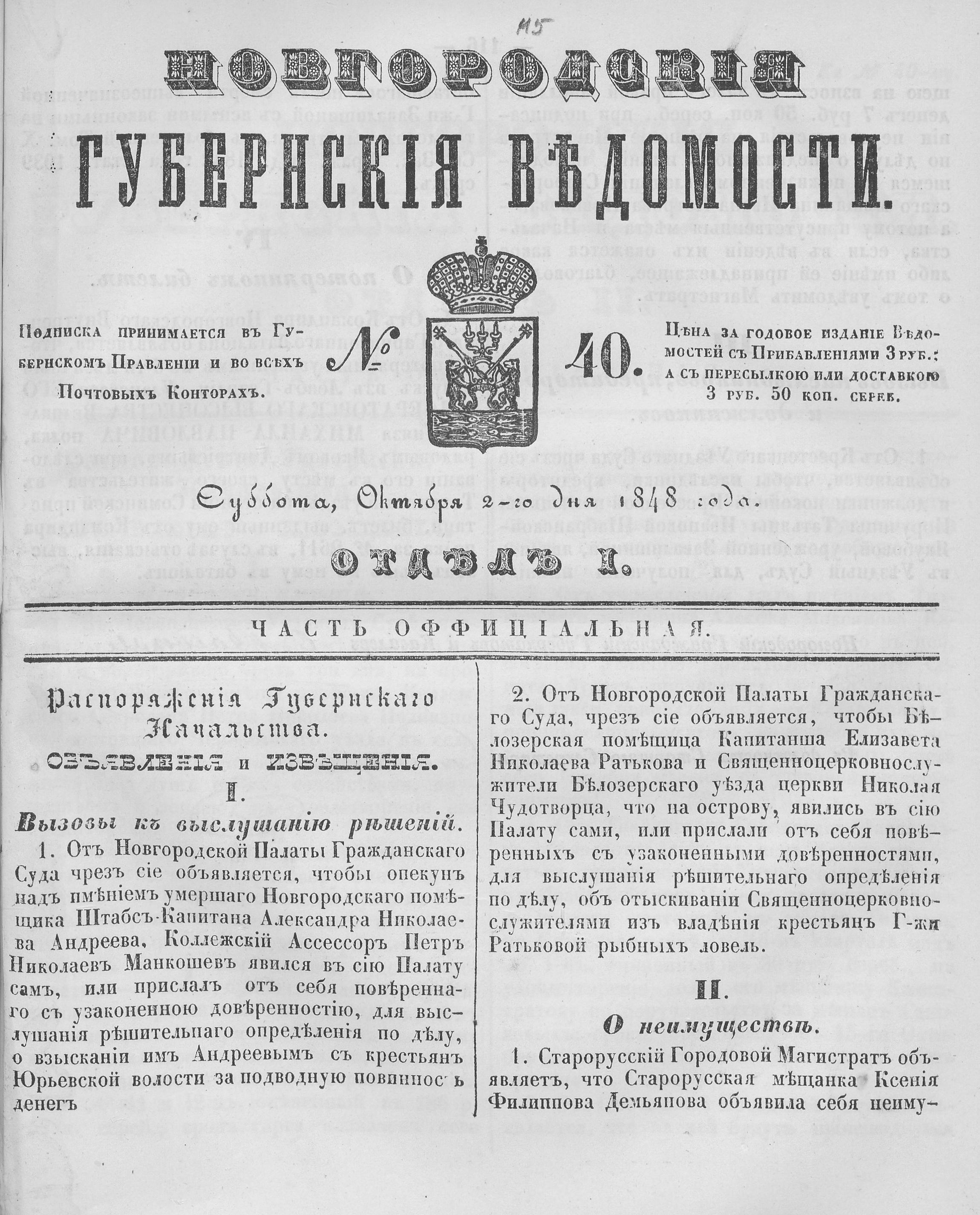 НОВГОРОДСКИЕ ГУБЕРНСКИЕ ВЕДОМОСТИ