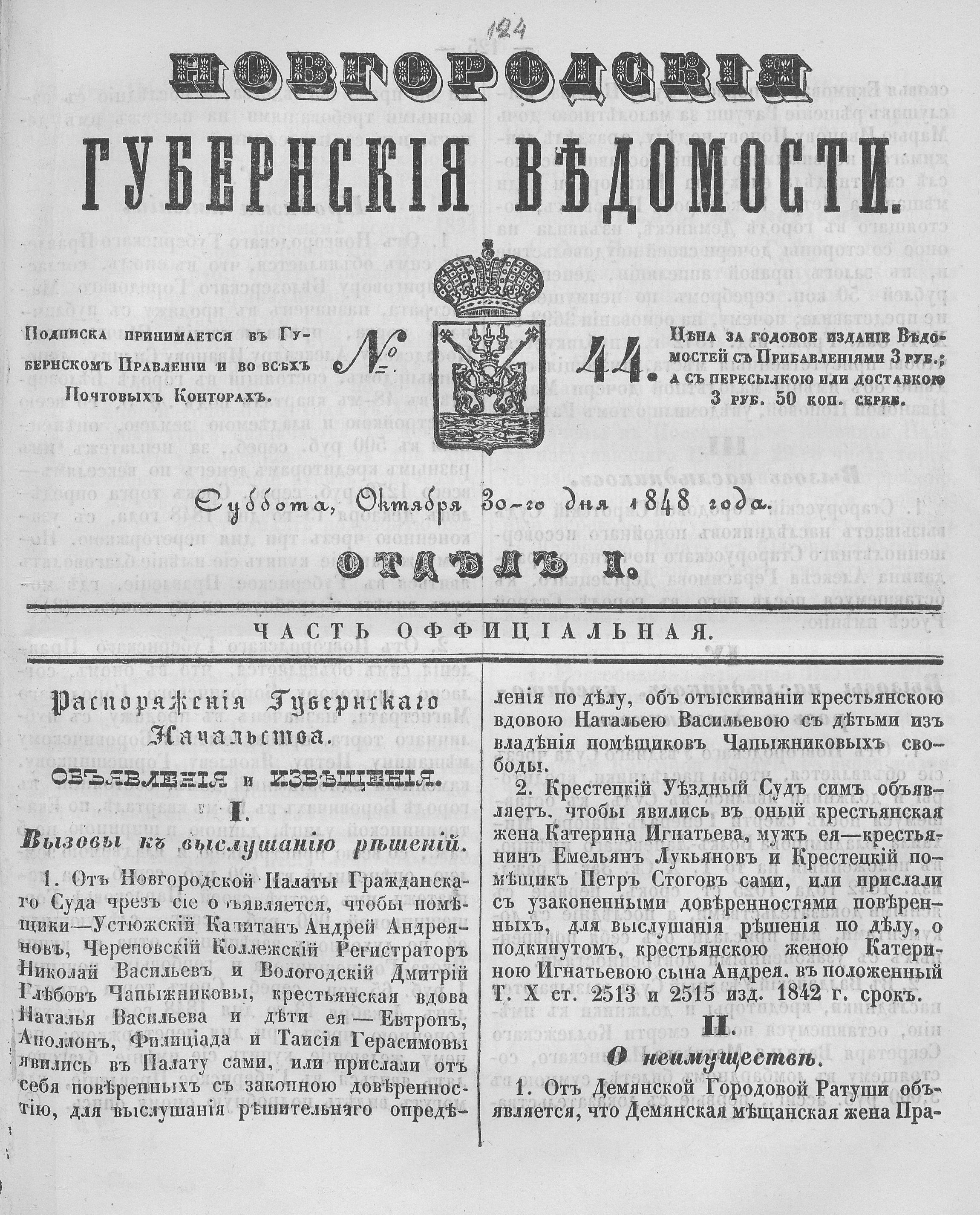 НОВГОРОДСКИЕ ГУБЕРНСКИЕ ВЕДОМОСТИ