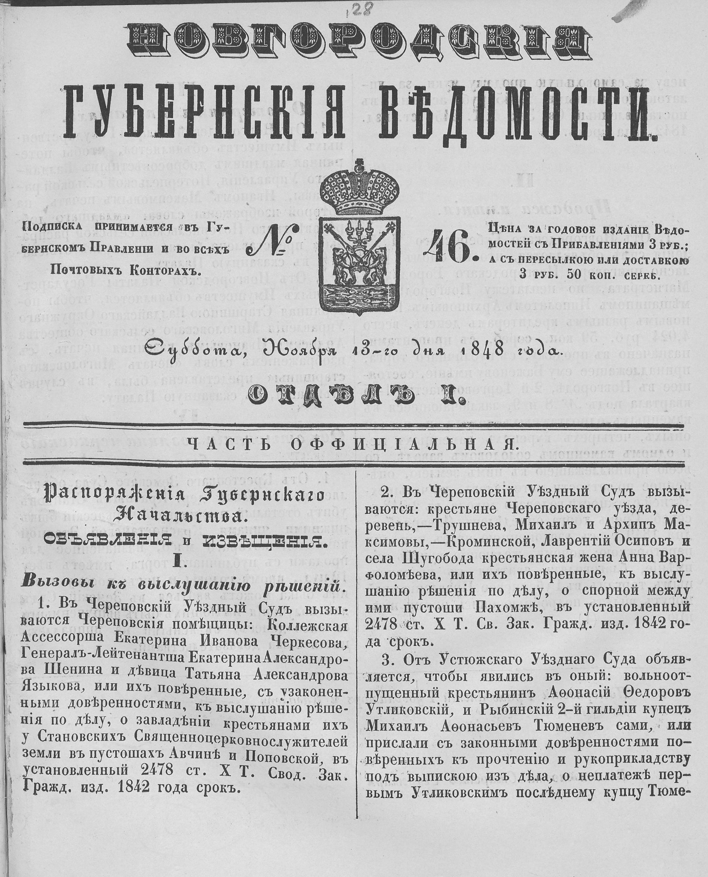 НОВГОРОДСКИЕ ГУБЕРНСКИЕ ВЕДОМОСТИ