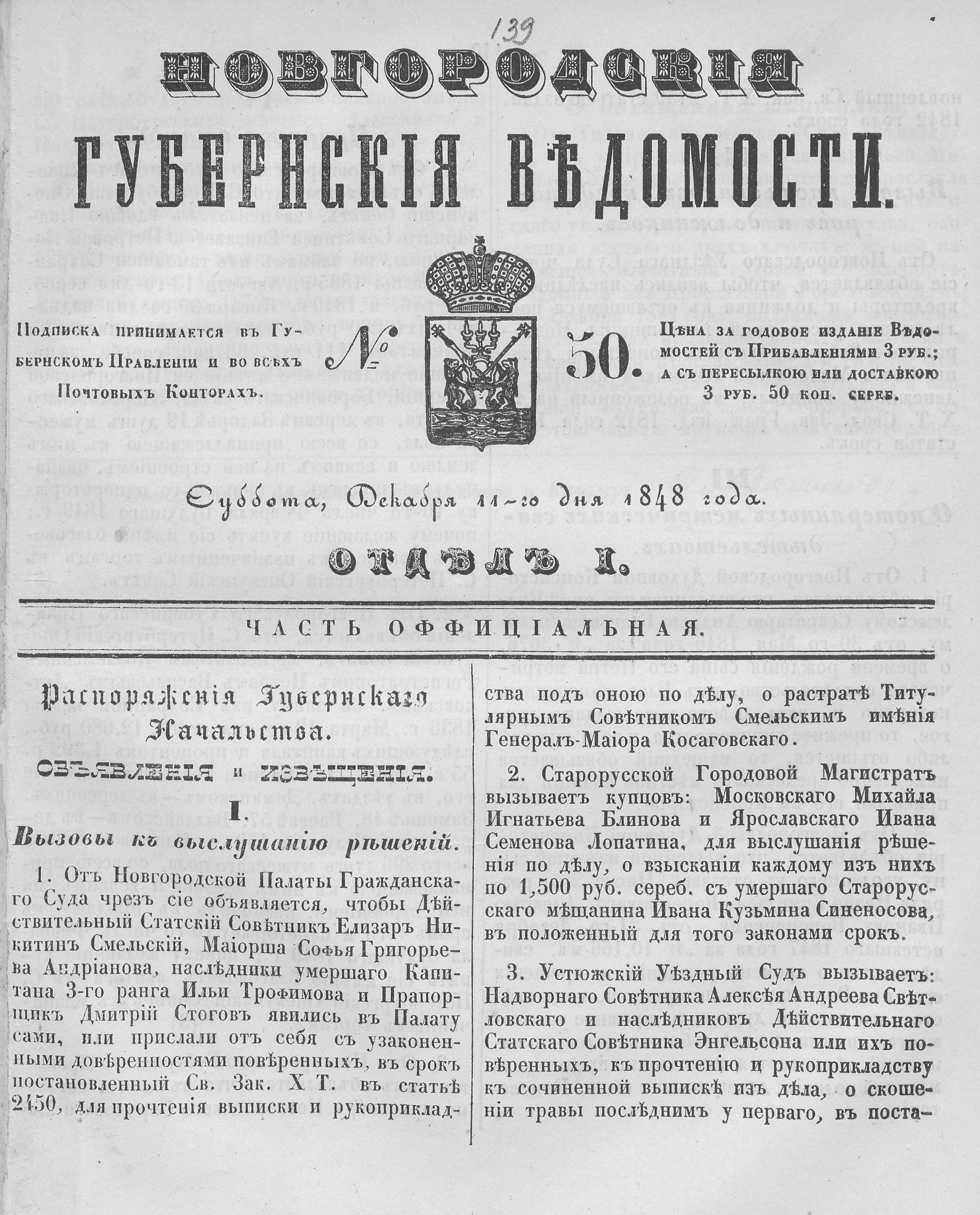 НОВГОРОДСКИЕ ГУБЕРНСКИЕ ВЕДОМОСТИ