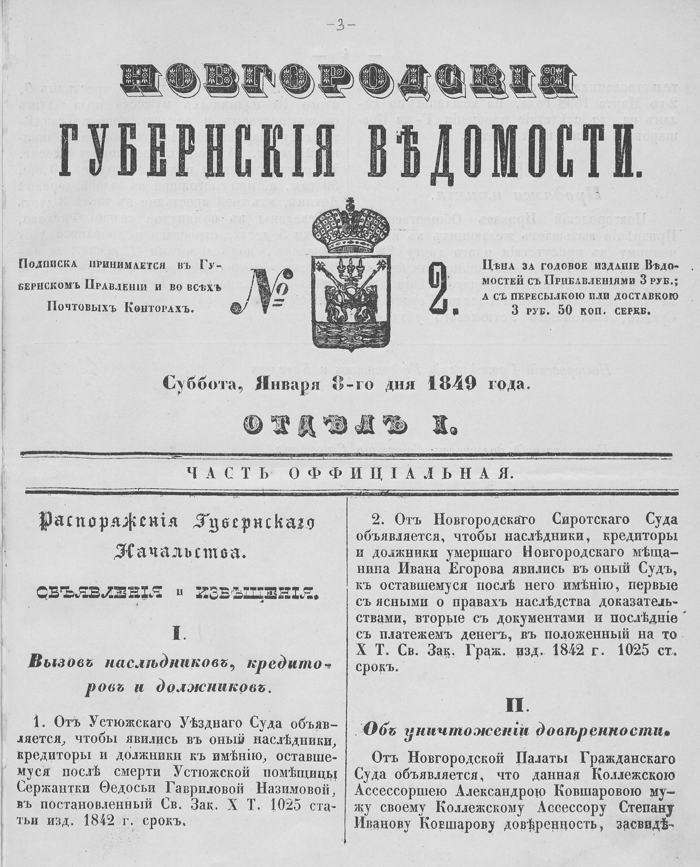 НОВГОРОДСКИЕ ГУБЕРНСКИЕ ВЕДОМОСТИ