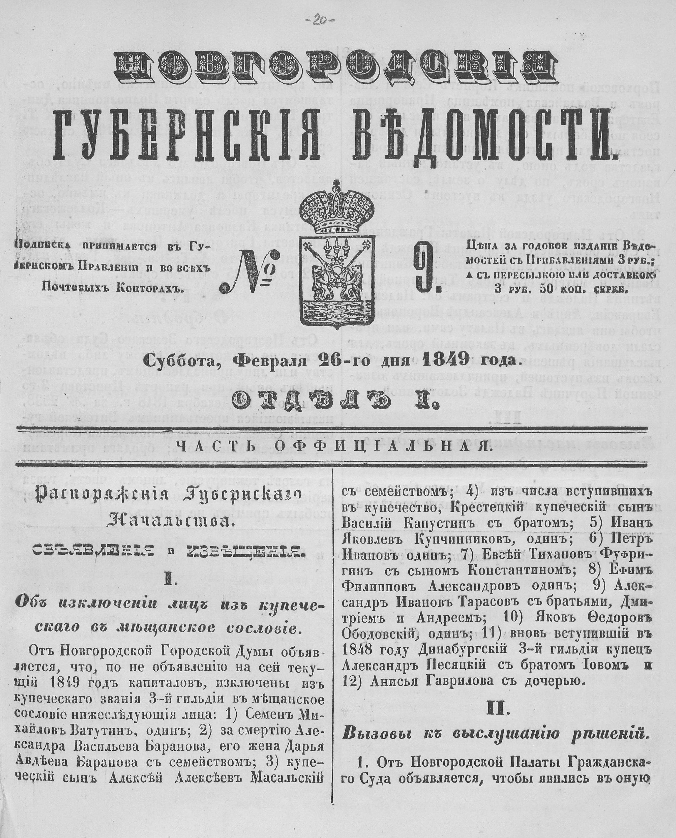 НОВГОРОДСКИЕ ГУБЕРНСКИЕ ВЕДОМОСТИ