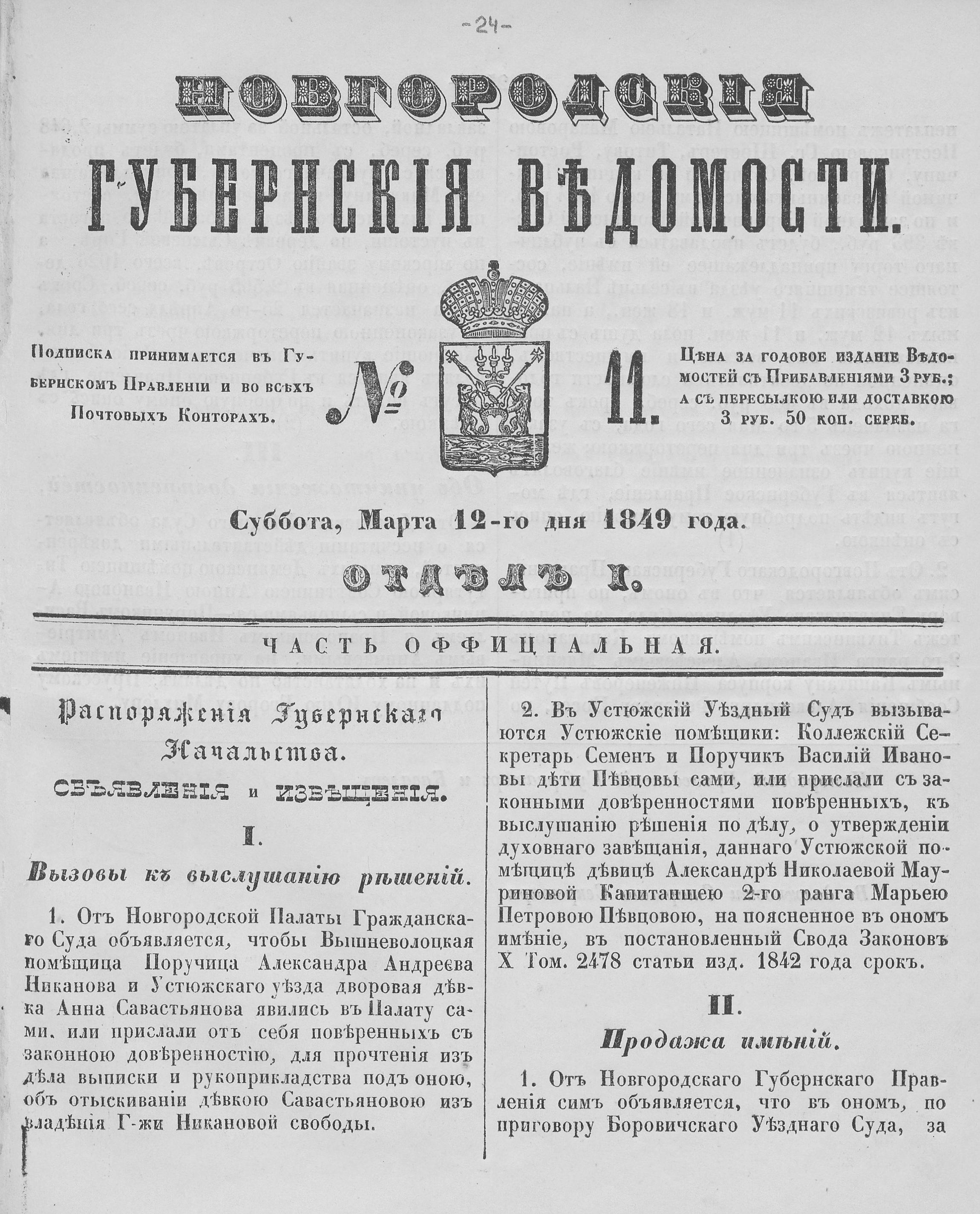 НОВГОРОДСКИЕ ГУБЕРНСКИЕ ВЕДОМОСТИ