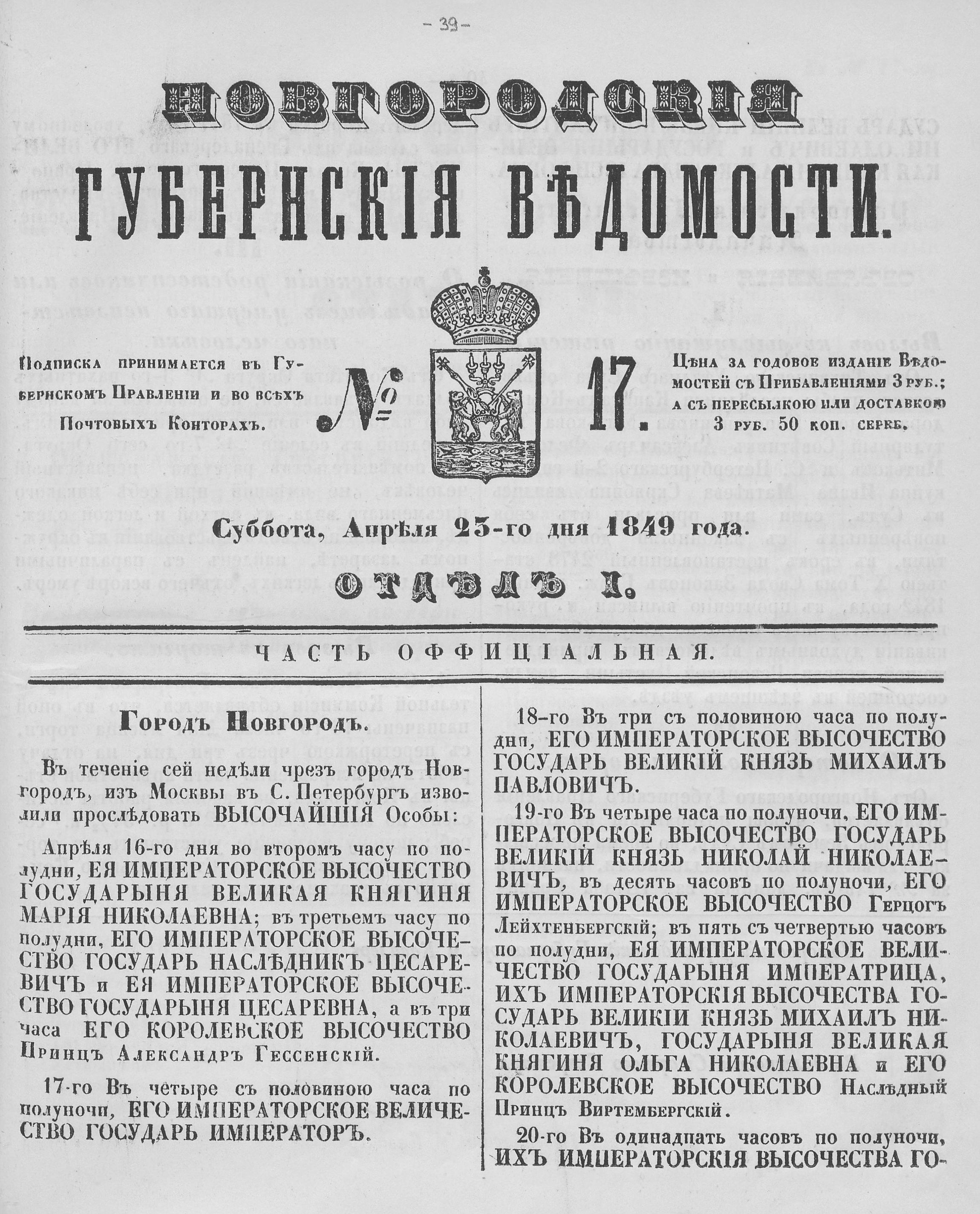 НОВГОРОДСКИЕ ГУБЕРНСКИЕ ВЕДОМОСТИ