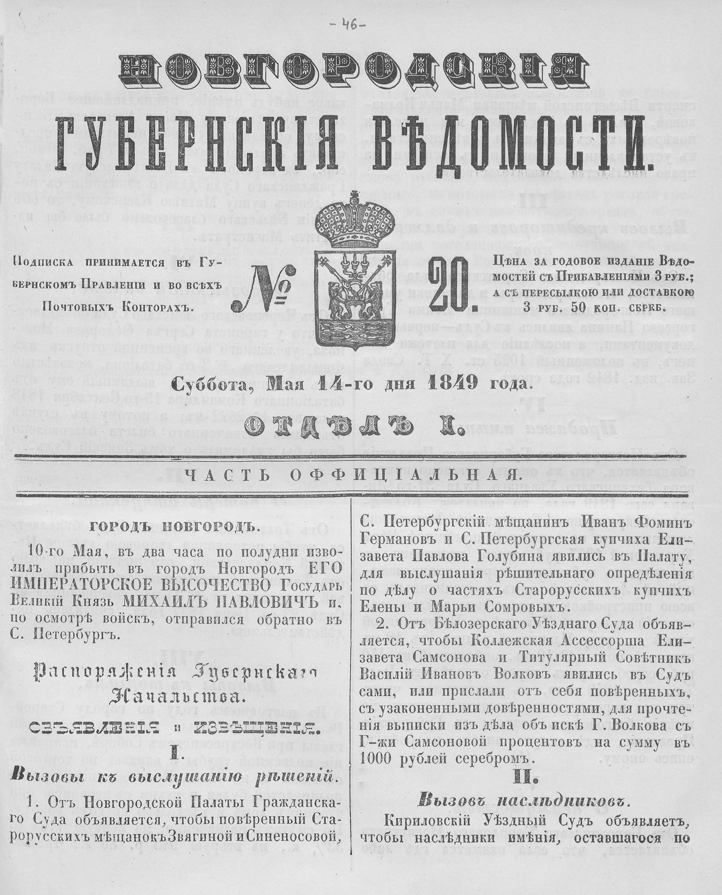 НОВГОРОДСКИЕ ГУБЕРНСКИЕ ВЕДОМОСТИ