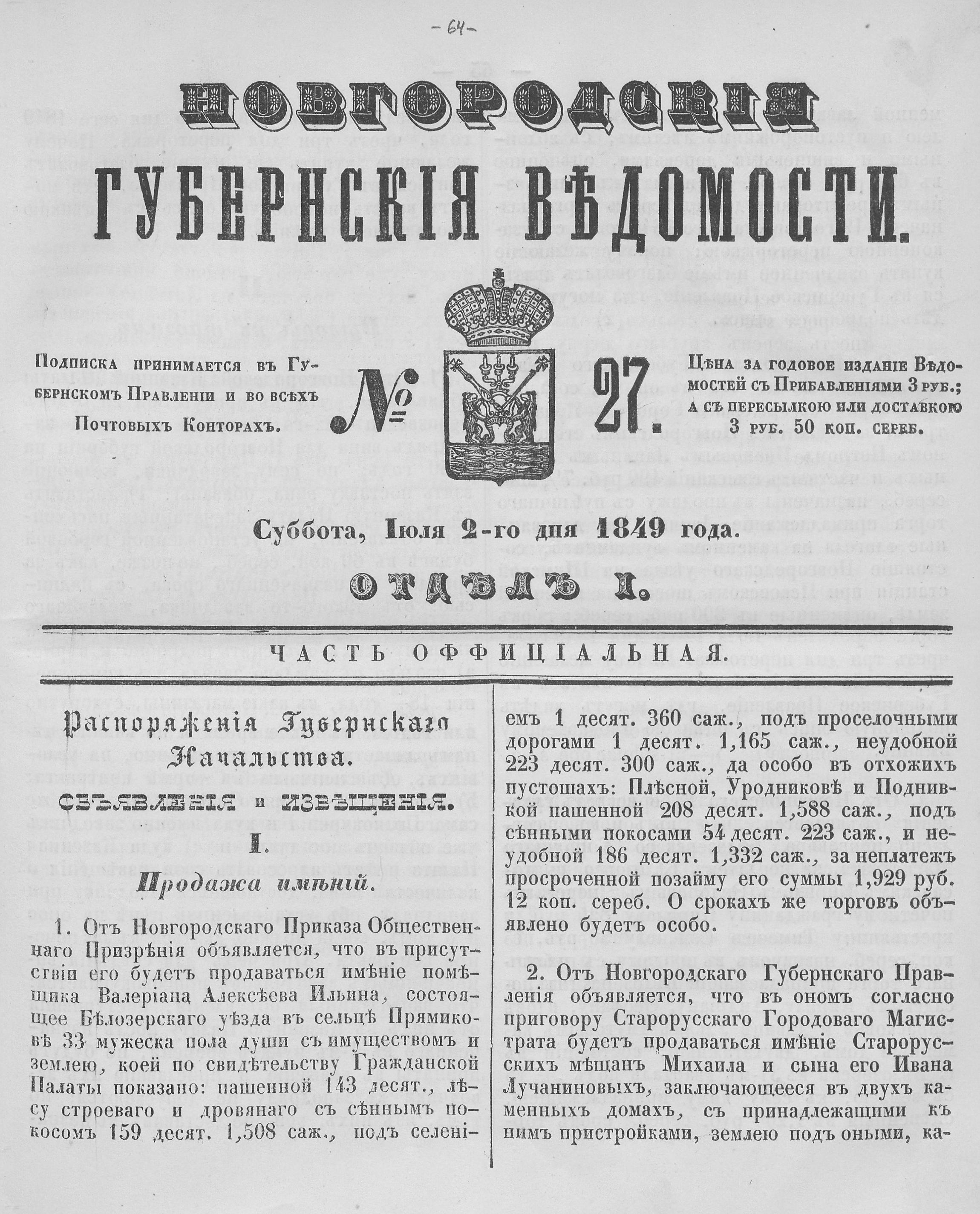НОВГОРОДСКИЕ ГУБЕРНСКИЕ ВЕДОМОСТИ
