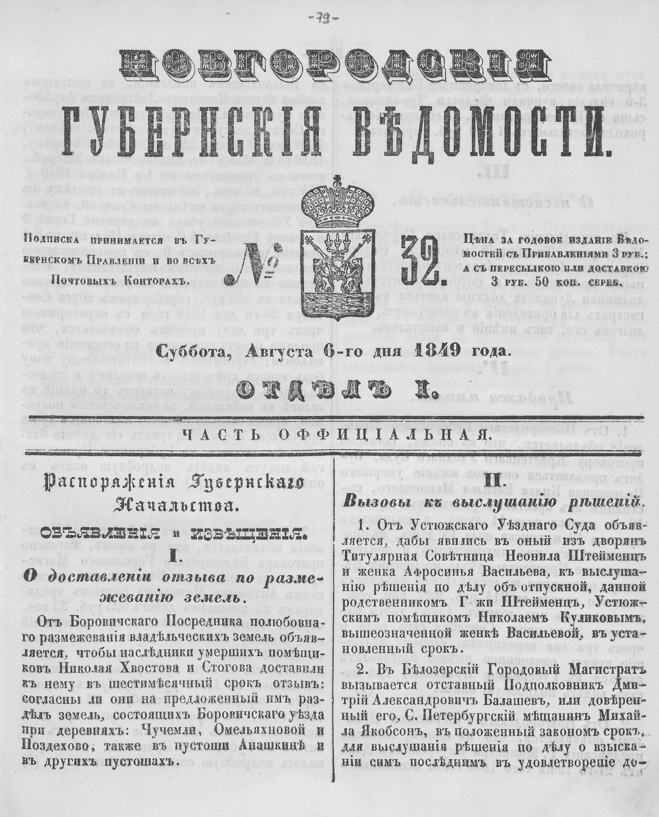 НОВГОРОДСКИЕ ГУБЕРНСКИЕ ВЕДОМОСТИ