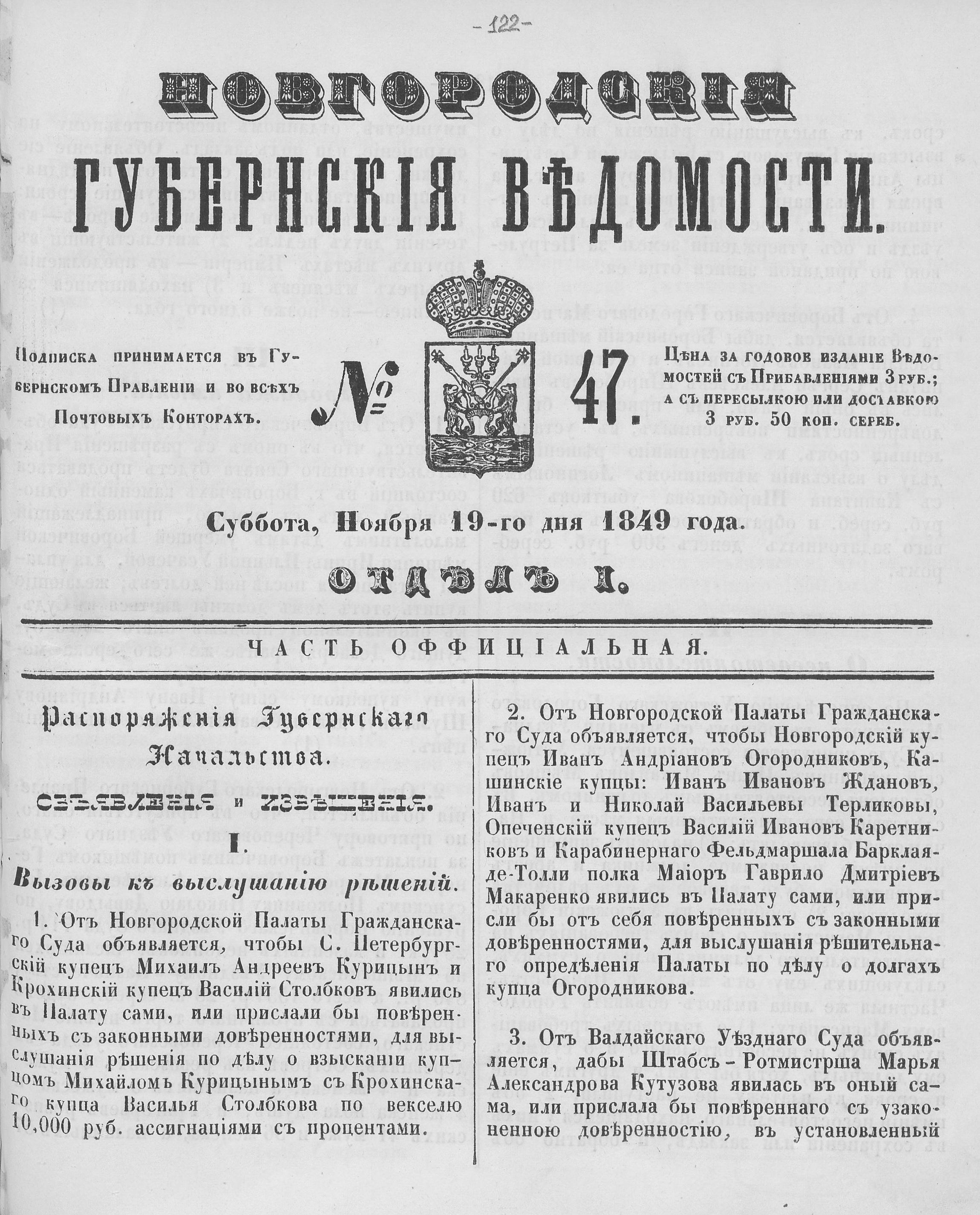 НОВГОРОДСКИЕ ГУБЕРНСКИЕ ВЕДОМОСТИ