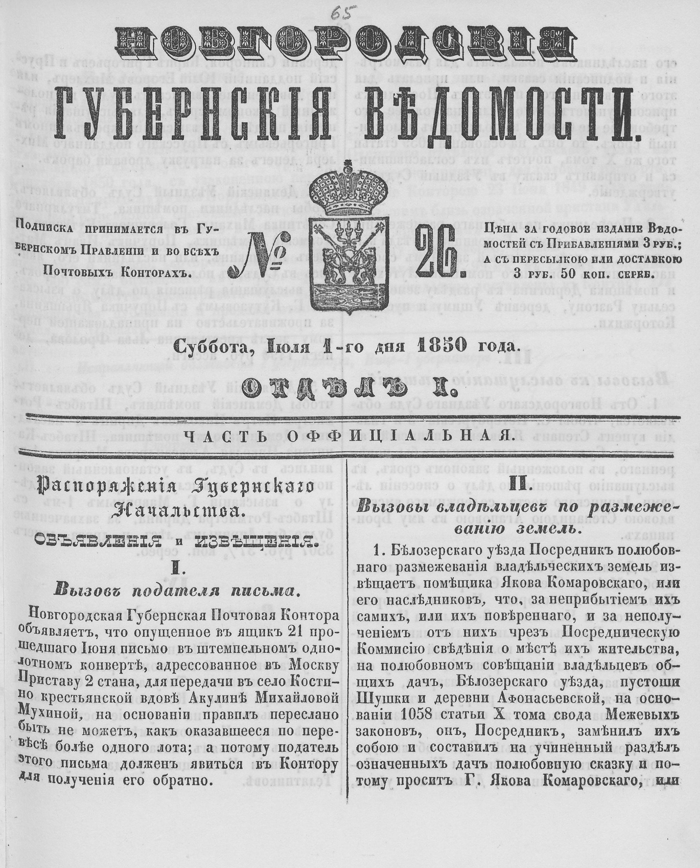 НОВГОРОДСКИЕ ГУБЕРНСКИЕ ВЕДОМОСТИ