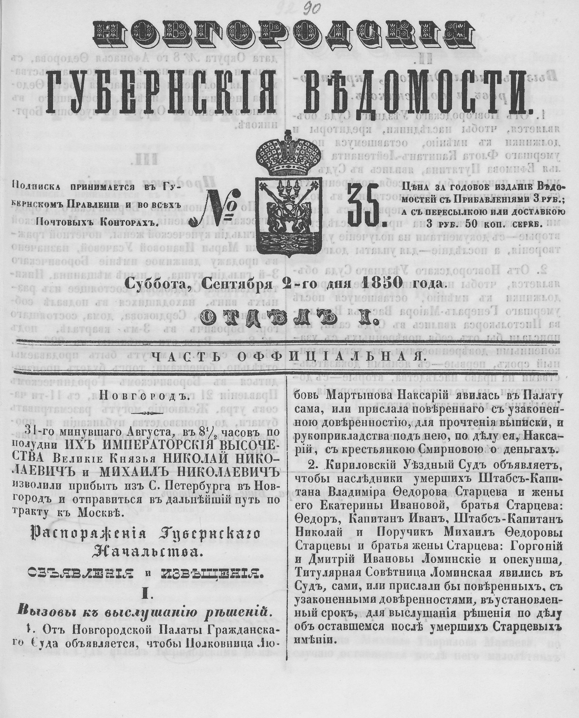 НОВГОРОДСКИЕ ГУБЕРНСКИЕ ВЕДОМОСТИ