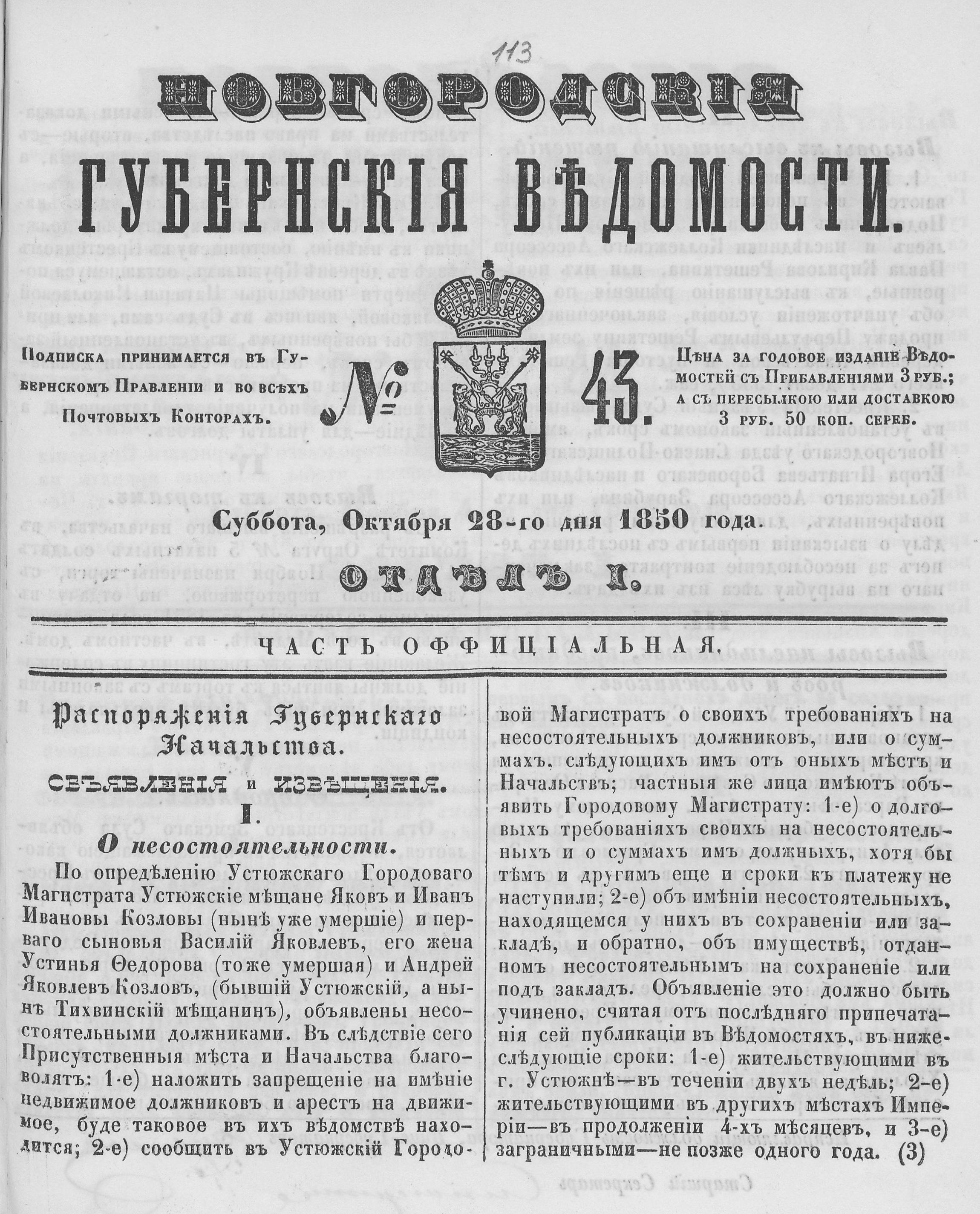 №43, 28 октября 1850 год
